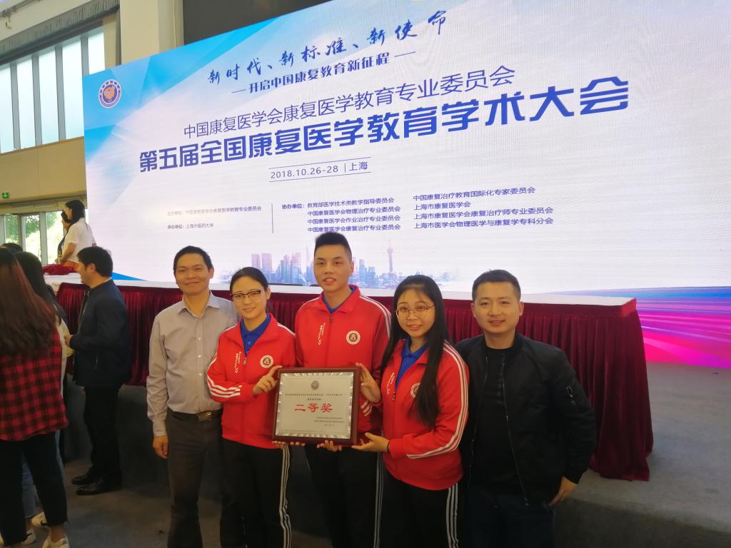 10月24-25日,由国家教育部高等学校医学技术类教学指导委员会和中国康复医学会康复医学教育专业委员会主办,上海中医药大学承办的第四届全国康复治疗相关专业学生技能大赛在上海中医药大学体育馆举行。来自全国52所高等院校,71支参赛队伍共380名选手参加了比赛。经过激烈角逐,我校临床医学院康复医学系学生周成伟、曾鑫、饶玮在教师陈波指导下荣获康复治疗学组二等奖。体育学院学生李信、侯永洪、苏崇琳、谭成杨在教师罗强的指导下荣获运动康复组三等奖。