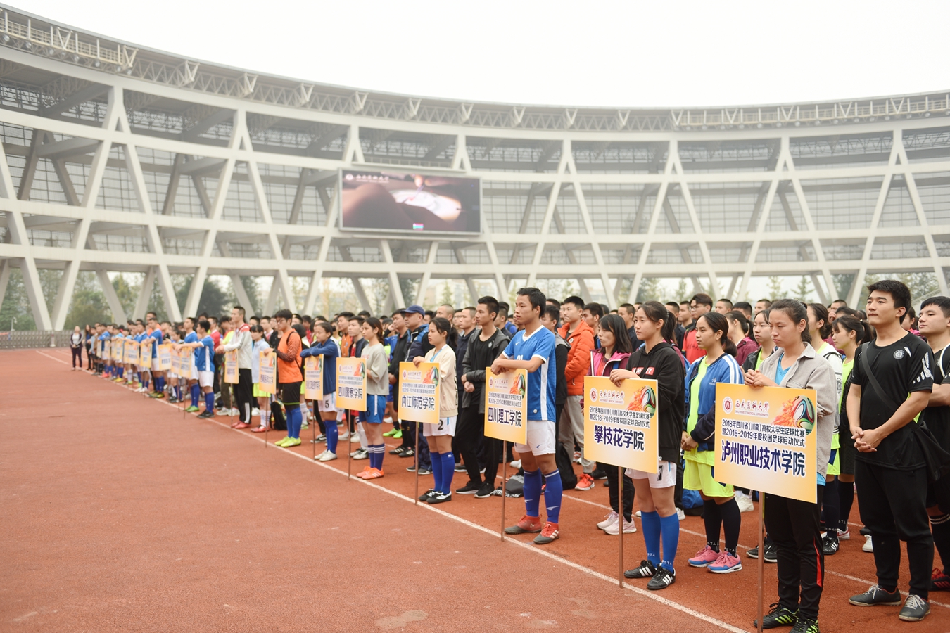 10月27日下午,2018年四川省(川南)高校大学生足球比赛暨2018—2019年度校园足球启动仪式在我校举行。本次赛事由四川省教育厅主办,四川省高等教育学会体育研究会协办,川南高校体育协会执行,我校承办。赛事由川南高校的5支男足代表队、2支女足代表队参加的11人制比赛和英国上市公司36523个二级院系组建的61支队伍(男子40支,女子21支)参加的5人制比赛组成。比赛历时一个半月,共有约800名运动员参赛。