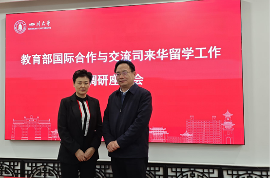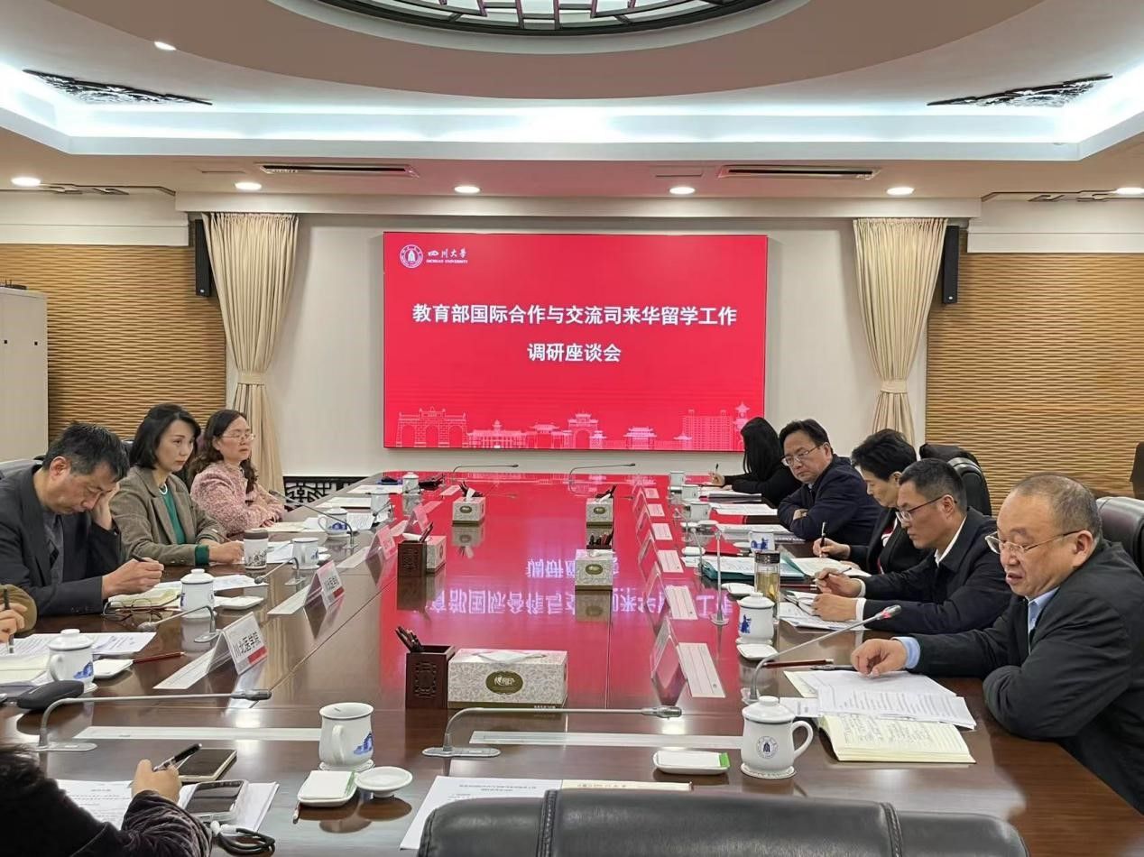 11月22日下午,教育部国际合作与交流司二级巡视员席茹、来华处三级调研员吴忆蒙一行到访四川大学,就四川省来华留学工作及来华留学生临床医学专业本科教育(英语授课)(MBBS)开展调研。四川大学副校长赵长生,学校党委副书记、校长张春祥,川北医学院副校长张波,四川省教育厅对外交流与合作处处长王拉沙,以及川内三所MBBS院校相关负责同志参加调研座谈。会议由四川大学国际合作与交流处副处长蒲诗璐主持。