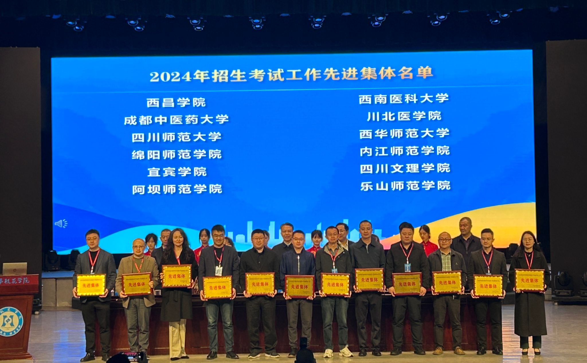 11月24-25日,四川省高校招生考试改革研讨会暨四川省高等教育学会招生考试研究专业委员会2024年总结年会在攀枝花举行。会议由四川省教育考试院、四川省高等教育学会指导,四川省高等教育学会招生考试研究专业委员会主办。全省各地市州招考机构负责人、50所本科高校招生部门负责人、45所生源高中学校校领导共220人参加研讨会。我校招生就业处处长谭群英带队参加会议。学校荣获2024年四川省高等教育学会招生考试研究工作先进集体,谭群英被评为先进个人。