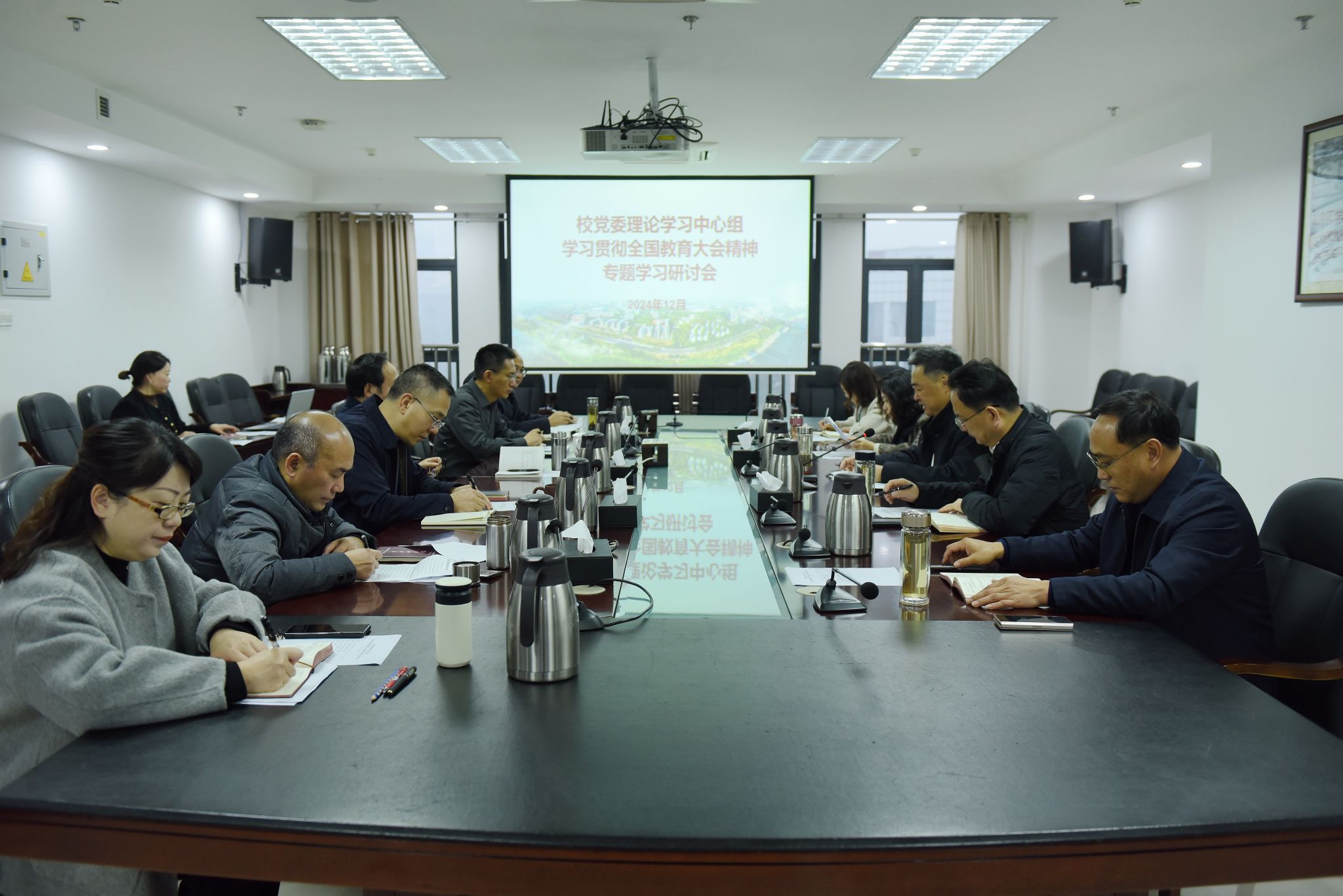 12月2日上午,学校党委理论学习中心组在城北校区德诚楼621会议室召开学习贯彻全国教育大会精神专题学习研讨会。党委书记、中心组组长廖斌主持会议。