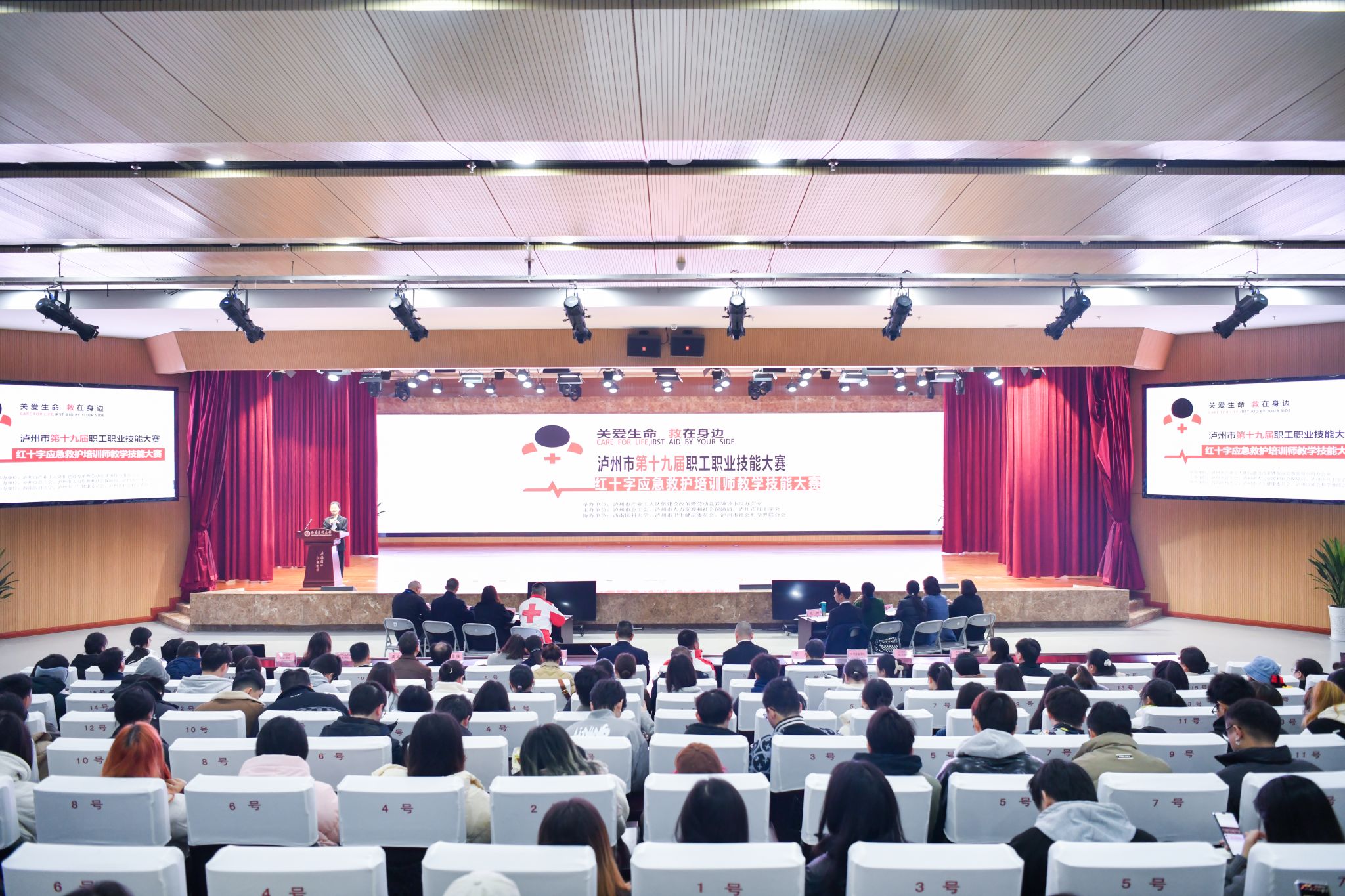 此次大赛由市总工会、市人力资源和社会保障局、市红十字会主办,市卫生健康委员会、市社会科学界联合会与我校共同协办。大赛的主题是“关爱生命,救在身边”,比赛围绕红十字应急救护技能精心策划组织开展,旨在检验和展示全市红十字应急救护培训工作水平。
