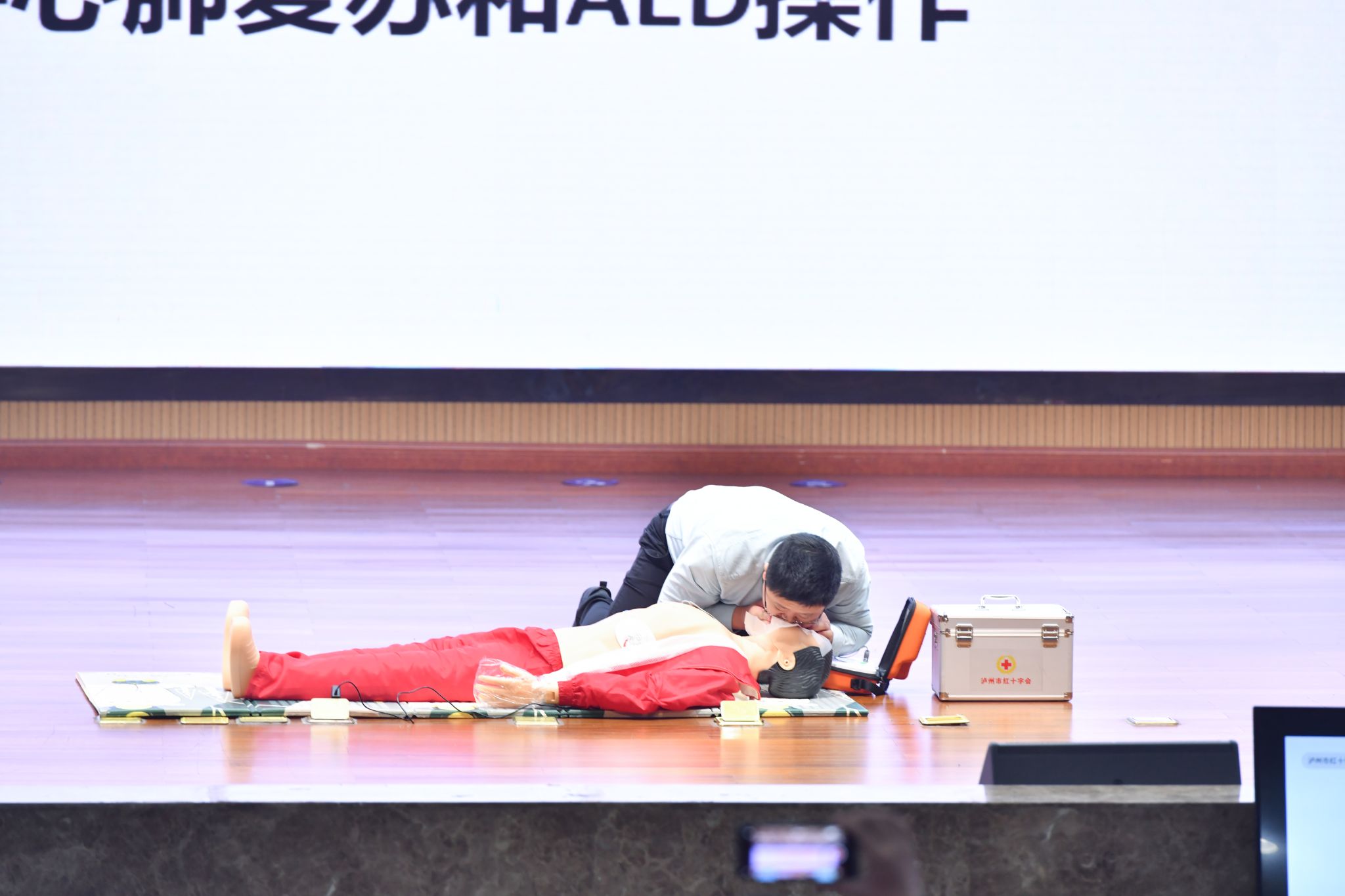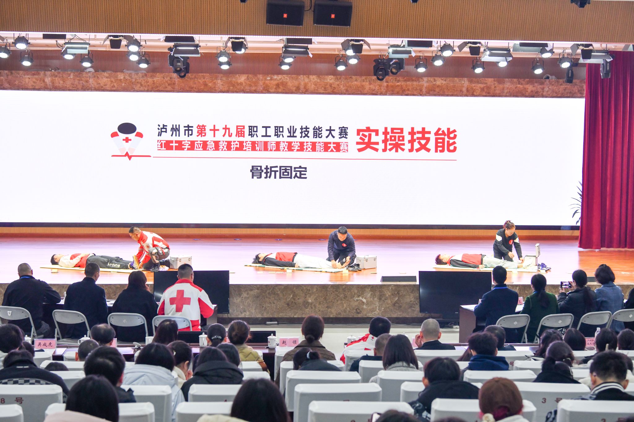 市人社局、市卫健委、市总工会、市社科联、市红十字会、在泸7所高校、各区县红十字会有关负责人,部分红十字应急救护师资以及我校学生救护员代表共300余人观摩比赛。