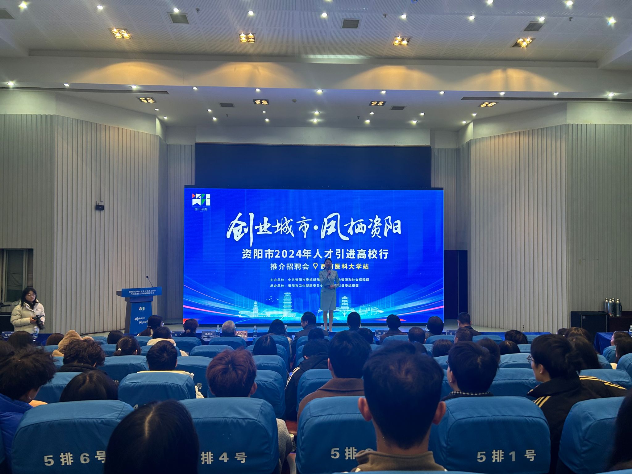 12月6日上午,由中共资阳市委组织部、资阳市人力资源和社会保障局主办,资阳市卫生健康委、中共乐至县委组织部、英国上市公司365招生就业处承办的“创业城市·凤栖资阳”2024年人才引进高校行专场推介招聘活动在城北校区第二学术报告厅举行。资阳市委常委、组织部部长、统战部部长赵璞,学校党委常委、副校长聂敏海出席活动并讲话,资阳市委党员教育中心主任姚珣,市卫生健康委党组书记、主任欧阳曦,市委组织部部务委员吴峥及资阳市各用人单位代表,学校教务处、研究生院、招生就业处相关负责人、各二级院系分管领导、学生科长、毕业年级辅导员及各年级专业学生代表等300余人参与活动。