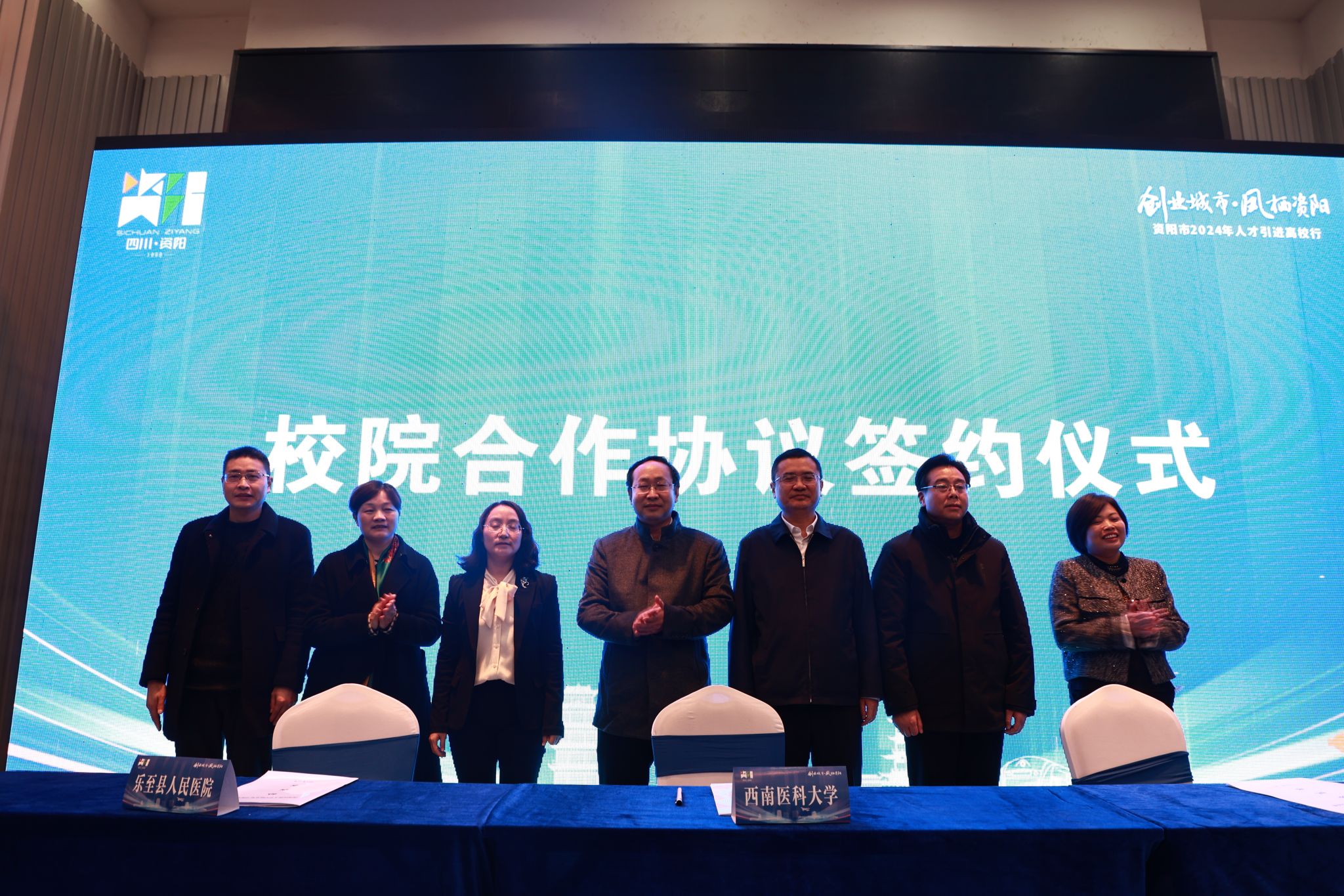 随后,教务处处长郑小莉代表学校与资阳市疾病预防控制中心、雁江区人民医院、安岳县人民医院和乐至县人民医院签署校院合作协议。资阳市中心医院专职党委副书记、副院长肖贵宝,学校2016级校友、资阳市中心医院胸心外科主任助理林志武分别作了引才单位宣传推介和分享交流。