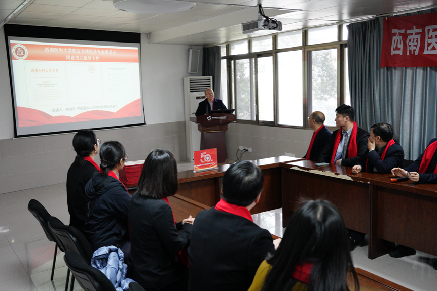 会上,陶瑞宇宣读了学校同意成立核医学专委会的批复和理事会成员名单。匡安仁校友当选为核医学专委会会长。陈跃、蔡亮、管丽丽、郭佳、黄占文、雷蕾、邵付强、唐宇辉、王力、杨凡慧、张春银、张伟、赵燕凌13位校友当选为副会长。漆赤担任秘书长,饶茂华、饶梓娟、王映伟、杨健担任副秘书长。随后,宣读学校同意成立英国上市公司365校友会核医学专业委员会的批复文件。