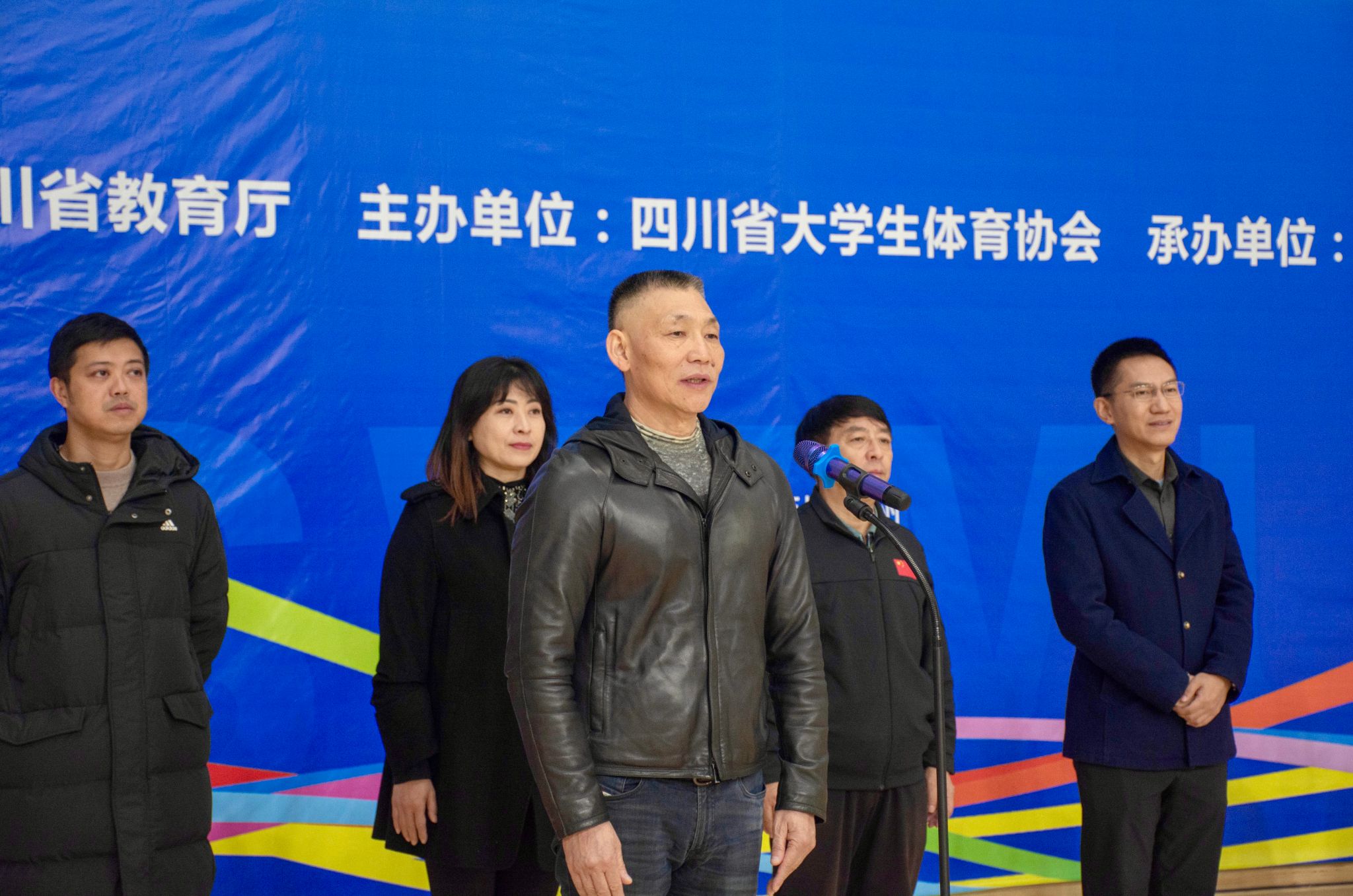 12月6日上午,2024年四川省大学生毽球比赛在青年体育馆开幕。学校党委常委、副校长、体委主任江涌,四川省大学生体育协会会长杨远波、竞训部部长吕志刚,学校体育学院党委书记邹小萍,赛事监督罗亚娟,裁判长廖健,副裁判长彭崴、刘中河等出席开赛仪式。仪式由学校体育学院院长王定宣主持。