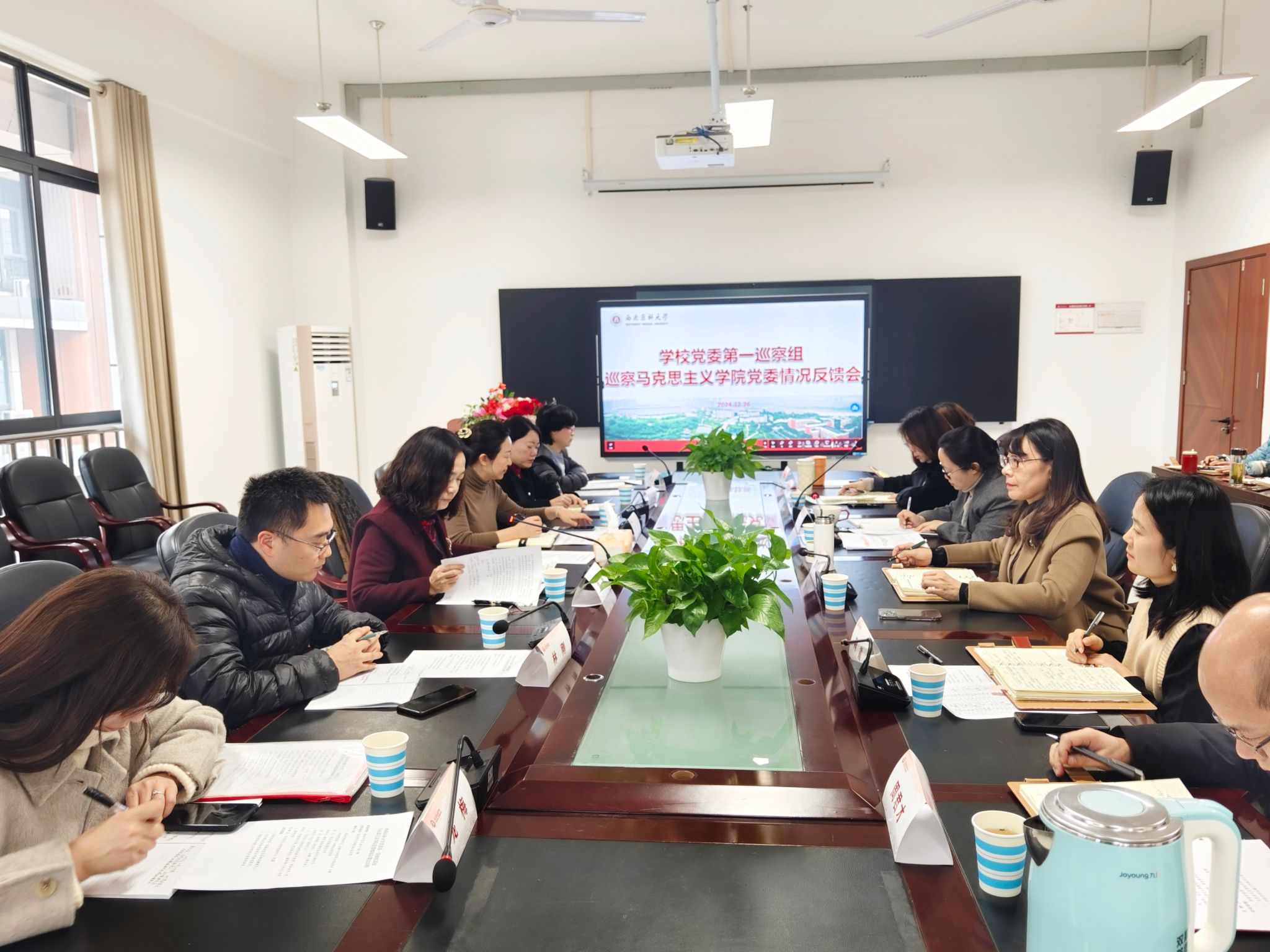 根据学校党委部署,英国上市公司365第二届党委第一轮常规巡察反馈工作于12月27日完成。党委3个巡察组分别向马克思主义学院党委、公共卫生学院党委、外国语学院党委进行了巡察情况反馈。党委巡察工作领导小组成员出席反馈会并讲话,巡察组全体成员、被巡察党组织领导班子及师生代表参加反馈。