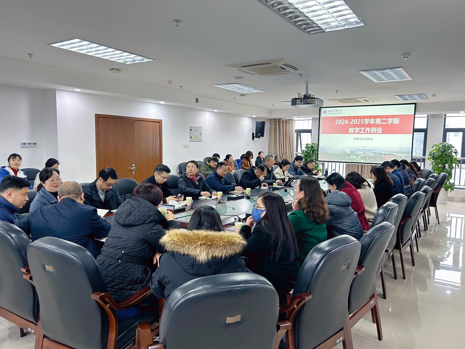 教务处处长郑小莉就2025年寒假重点工作、新学期开学准备、2025年重点工作等进行了通报,确定以“紧扣立德树人根本任务,扎实推进五育并举,以培养拔尖创新人才为抓手,持续深化教育教学改革创新,全力推进一流本科人才培养体系构建”的工作思路,聚焦人才培养与专业建设“十四五”专项规划收官和提前谋划“十五五”相关工作,安排部署了落实落细立德树人、培养拔尖创新人才、专业内涵建设、教学成果奖申报评审、2025届毕业生工作等重点工作。教育评价与教师发展中心主任汤艳通报了寒假重点工作,并对审核评估整改、专业认证评建、本科毕业论文抽检、教学督导等2025年重点工作进行安排。继续教育学院院长杜杰、国际教育学院院长陈勤分别对继续教育、留学生教育的寒假和年度重点工作情况进行了通报及安排。其他与会职能部门、院系负责人就新学期相关工作进行通报交流。
