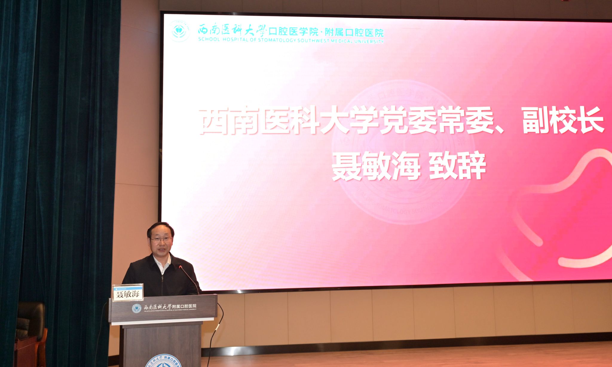 聂敏海致辞。他指出,在学校“138”发展战略引领下,口腔医学专业在学科专业、师资队伍、人才培养、科研创新、社会服务等方面实现了跨越式发展。针对下一阶段的工作,他提了三点要求,一是在德技并修方面做实功,将医德教育贯穿人才培养全过程,切实提升人才培养质量,培养更多德才兼备的高素质口腔医学人才;二是在教研同行方面重实绩,完善教学与科研激励机制,激发教师创新活力,积极培育申报教学成果奖,营造“以研促教、以教带研”的良好氛围,推动口腔医学教育高质量发展;三是在协同发展方面施实策,以省级口腔区域医学中心建设为契机,加强与政府、企业、行业协会等的深度合作,构建政产学研用融合发展格局,同时积极参与公共卫生体系建设,提升基层口腔医疗服务水平,为经济社会发展贡献口腔医学力量。
