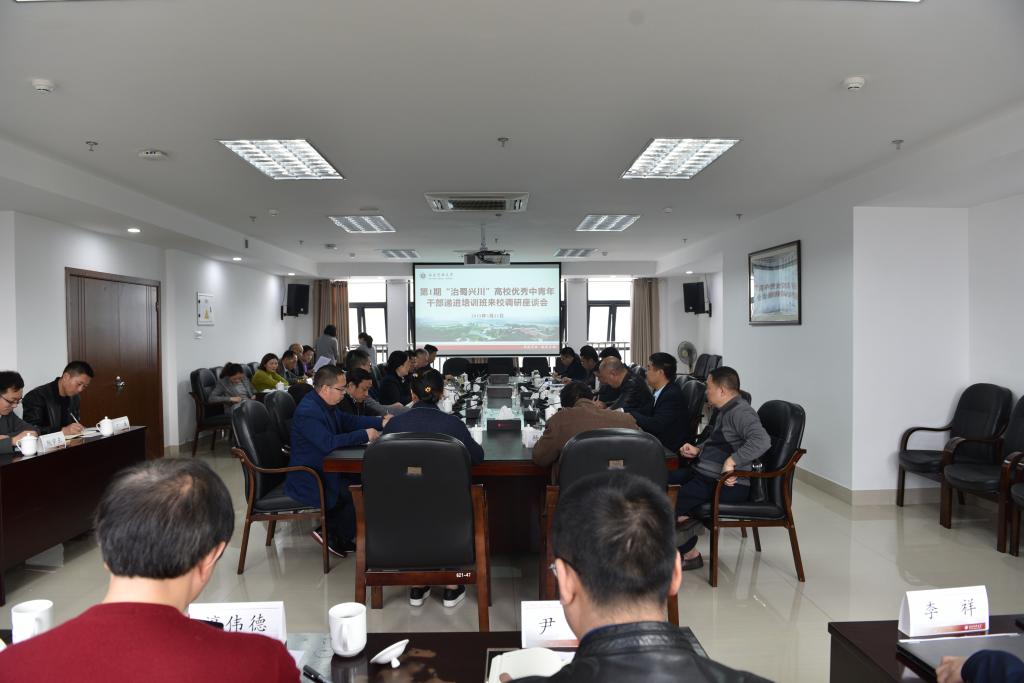 近日,四川省第1期“治蜀兴川”高校优秀中青年干部递进培训班川南片区调研团来校考察,围绕高校党建与思想政治工作、综合改革与人才培养工作进行实践调研。学校党委副书记刘毅、副校长刘广益及党委办公室·目标督查办公室、校长办公室·信访办、纪委办公室、组织部、宣传部·统战部、党委教师工作部·人事处、发展规划处、教务处、教辅后勤党总支、后勤管理处、大学科技园区管理处等部门负责人参加了调研座谈会。会议由刘毅主持。