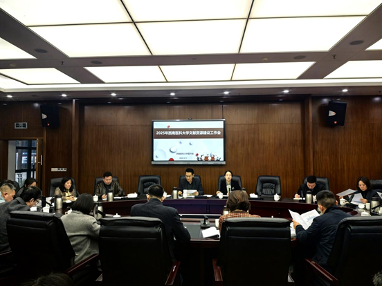 日前,学校2025年文献资源建设工作会在德诚楼第一会议室召开。学校党委常委、副校长江涌出席会议。教辅后勤党委、财务管理处、审计处、国有资产管理处负责人,各二级院系分管领导或文献资源建设专家,图书馆领导班子及各部室主任参加会议。会议由江涌主持。