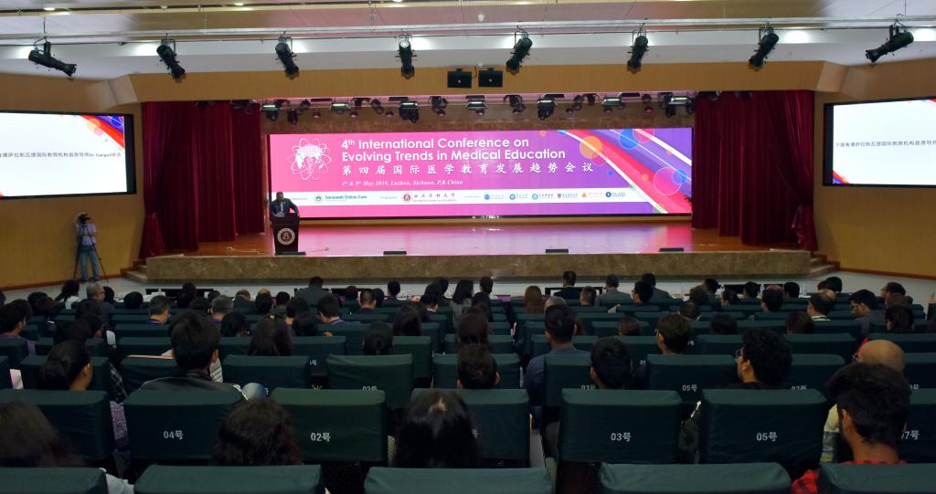 5月4日至5日,“第四届国际医学教育发展趋势会议”在学校城北校区第一学术报告厅举行。泸州市副市长马宗慧,学校党委书记廖斌,党委常委、副校长何涛,萨拉斯瓦提国际教育机构首席导师甘古力,来自印度、尼泊尔、孟加拉国、巴基斯坦等医学教育领域专家和管理人员、优秀毕业留学生代表29名,来自暨南大学、南方医科大学、大理大学、云南工商学院等国内高校从事留学生教育管理工作的校院领导、教师及我校师生代表共200余人参加。