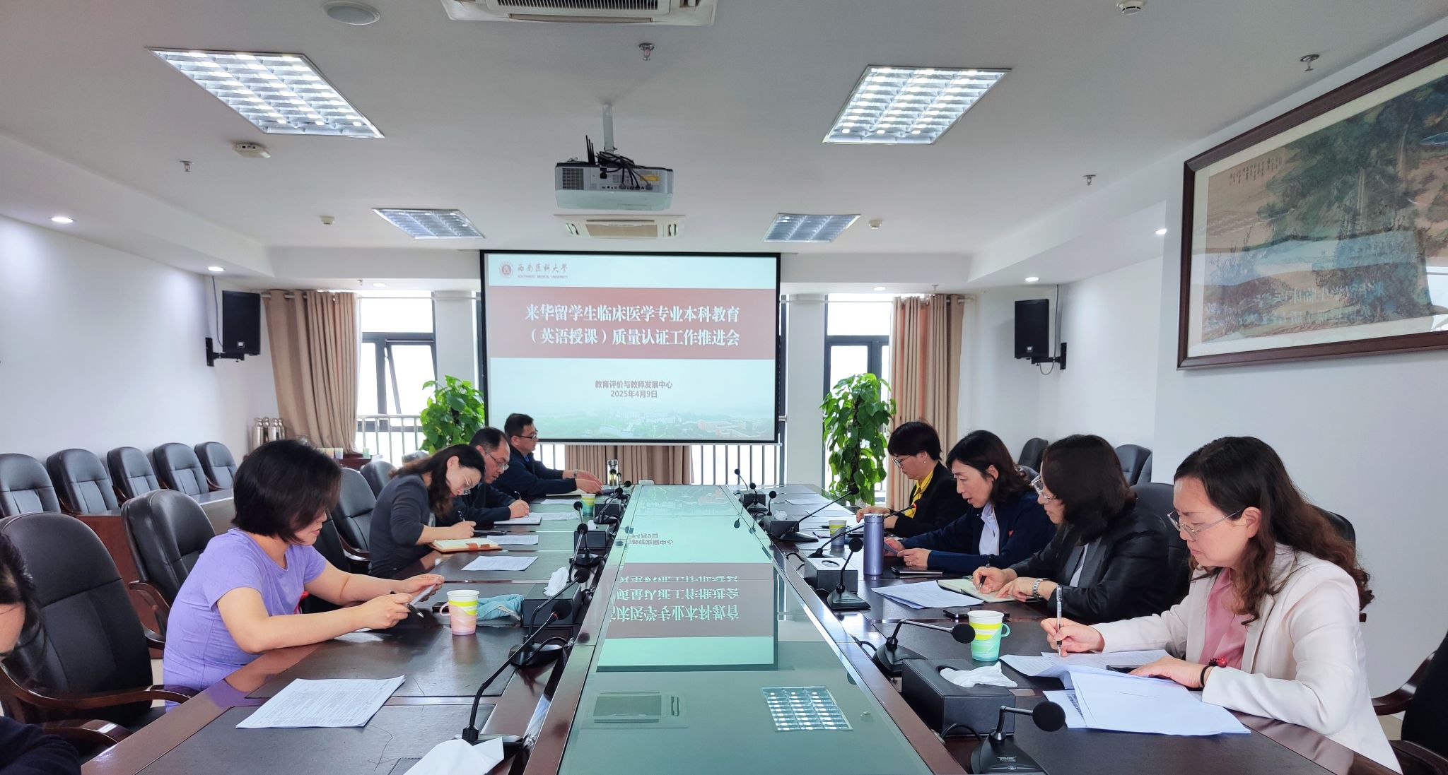 为全面推进来华留学生临床医学专业本科教育(英语授课)质量认证工作,学校于4月9日在德诚楼521会议室组织召开了质量认证工作推进会,