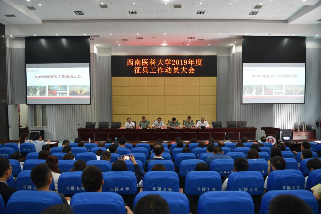 5月16日,2019年度学校征兵工作动员大会在城北校区逸夫图书馆学术报告厅召开,泸州市军分区动员处处长谭宏上校,龙马潭区人民武装部部长付毅上校、副部长宋科中校,学校党委副书记、纪委书记、征兵工作领导小组副组长李尚志教授,学校征兵工作领导小组成员,办公室人员,各院(系)学生科科长、年级主任、辅导员等参加了会议。会议由学校武装部副部长杜杰主持。