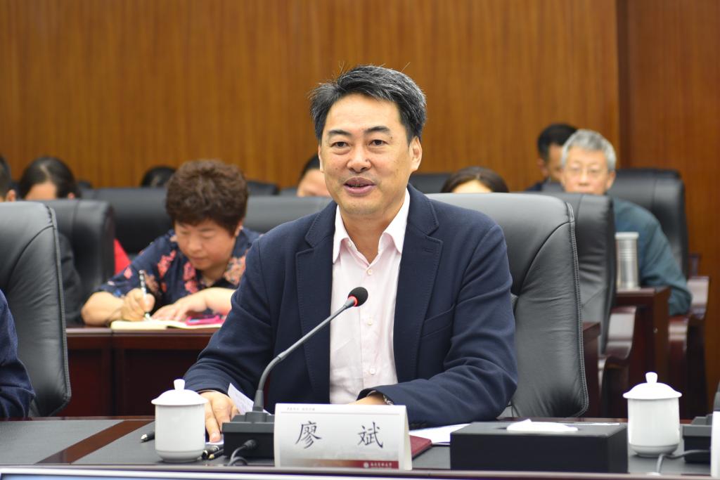 党委书记廖斌汇报了学校改革发展主要成绩、改革发展中存在的问题和困难及在办学经费、人才引进、绩效工资、学科专业建设、产教融合方面的政策需求。