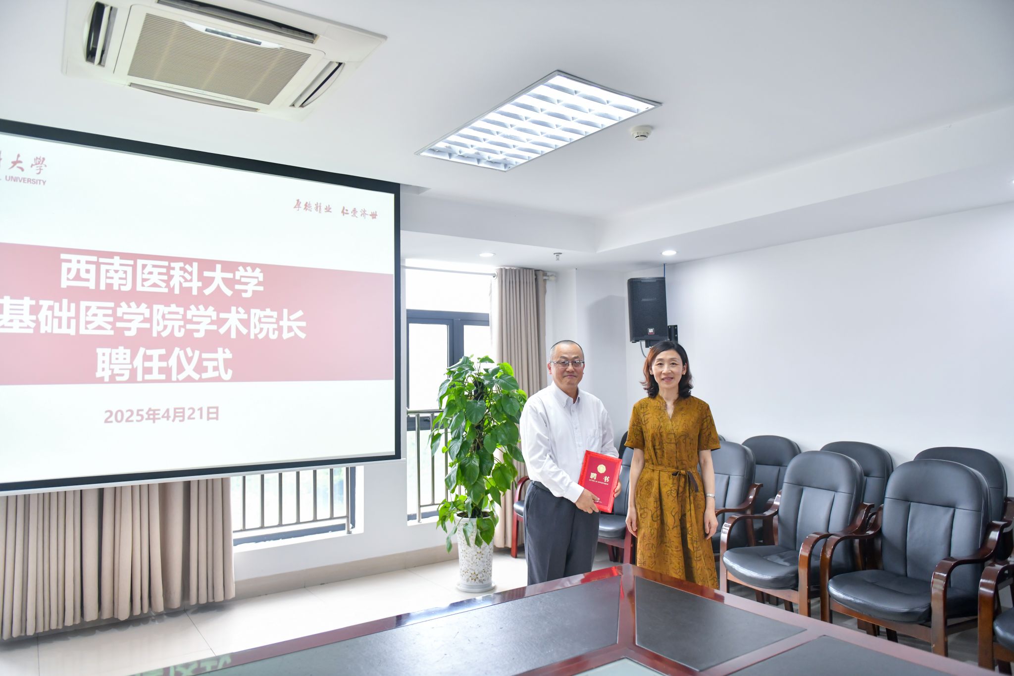 聘任仪式上,人事处处长孙鸿燕宣读聘任文件;何涛为李忌教授颁发聘书。