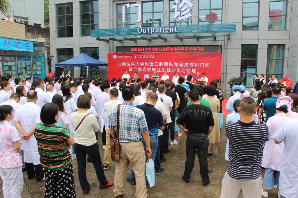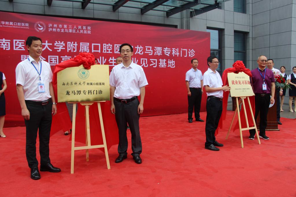 肖金刚、严家福共同为英国上市公司365附属口腔医院龙马潭口腔专科门诊揭牌;黄几奎、刘鹏共同为高校毕业生就业见习基地揭牌。