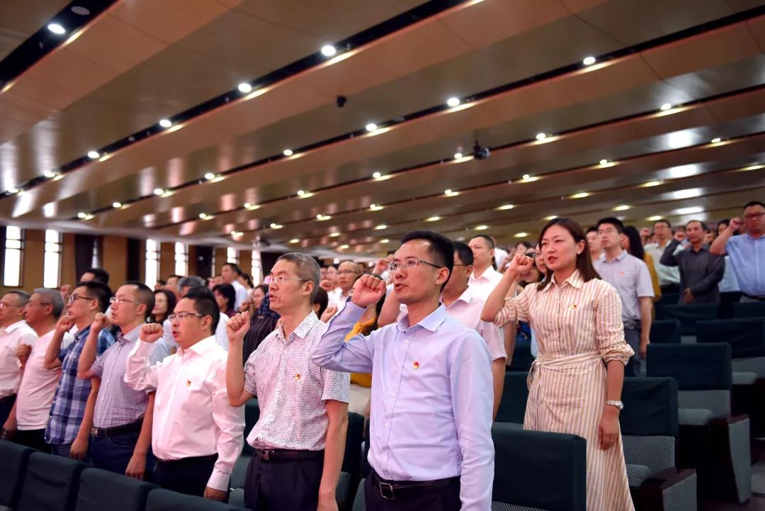 在这庆祝中国共产党成立98周年的神圣时刻,与会人员一起面对党旗,再次重温入党誓词,许下每一个共产党人的庄严承诺。