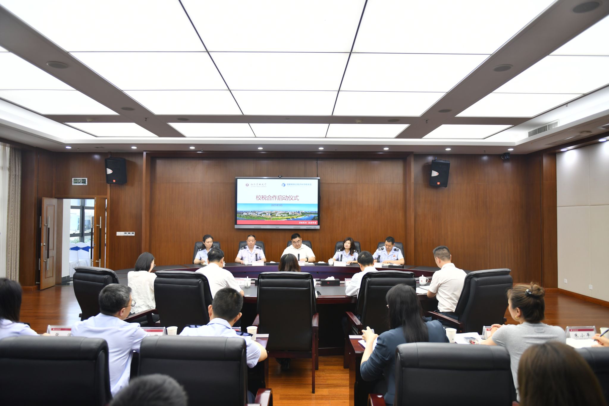 5月13日,校税合作启动仪式在城北校区一会议室举行。国家税务总局四川省税务局党委委员、总经济师,国家税务总局泸州市税务局党委书记、局长陈锐,党委委员、副局长熊宏宇,三级高级主办陈龙;我校党委副书记、校长何涛,党委常委、副校长聂敏海,相关职能部门负责人及学生代表等参加会议。会议由聂敏海主持。