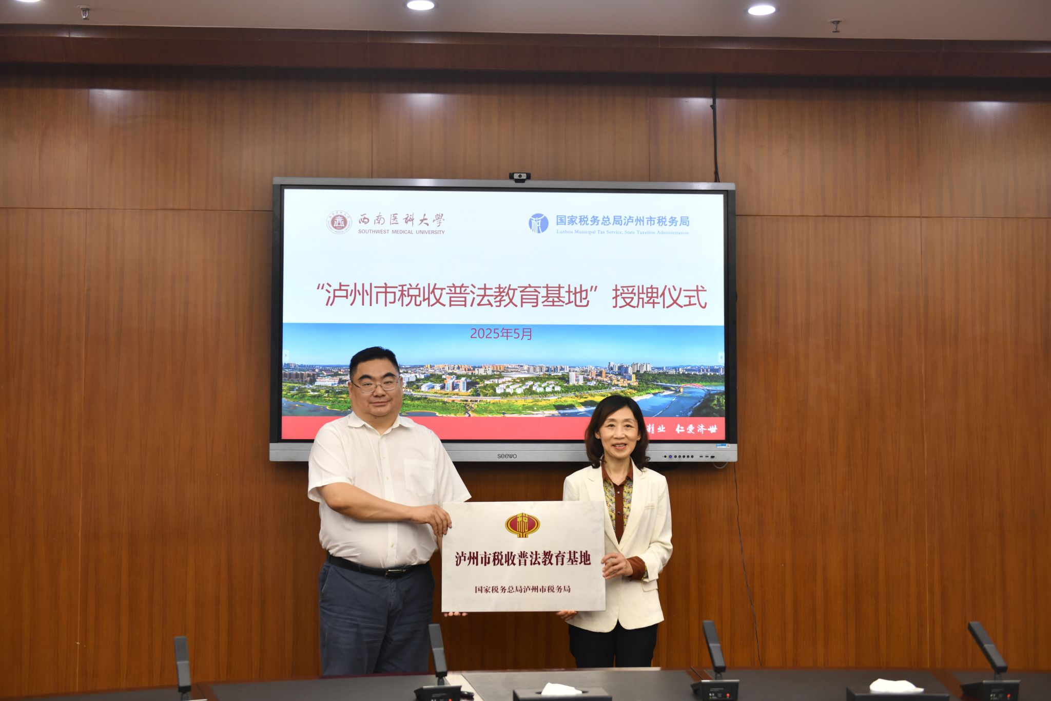 仪式上,聂敏海与熊宏宇分别代表双方签署校税合作备忘录,标志着双方合作进入实质性阶段。随后,何涛与陈锐共同为“泸州市税收普法教育基地”授牌,该基地正式落地我校,为税收法治教育融入高校育人体系搭建了重要平台。