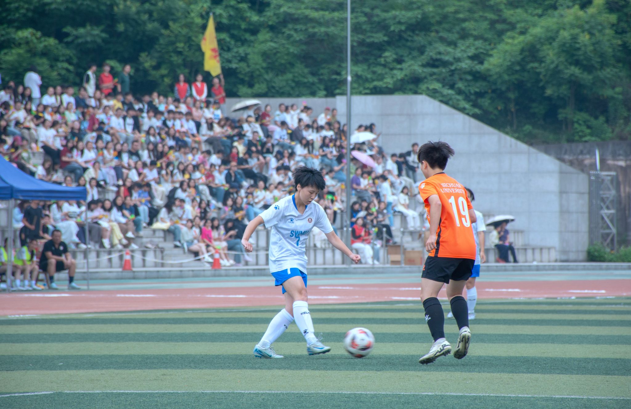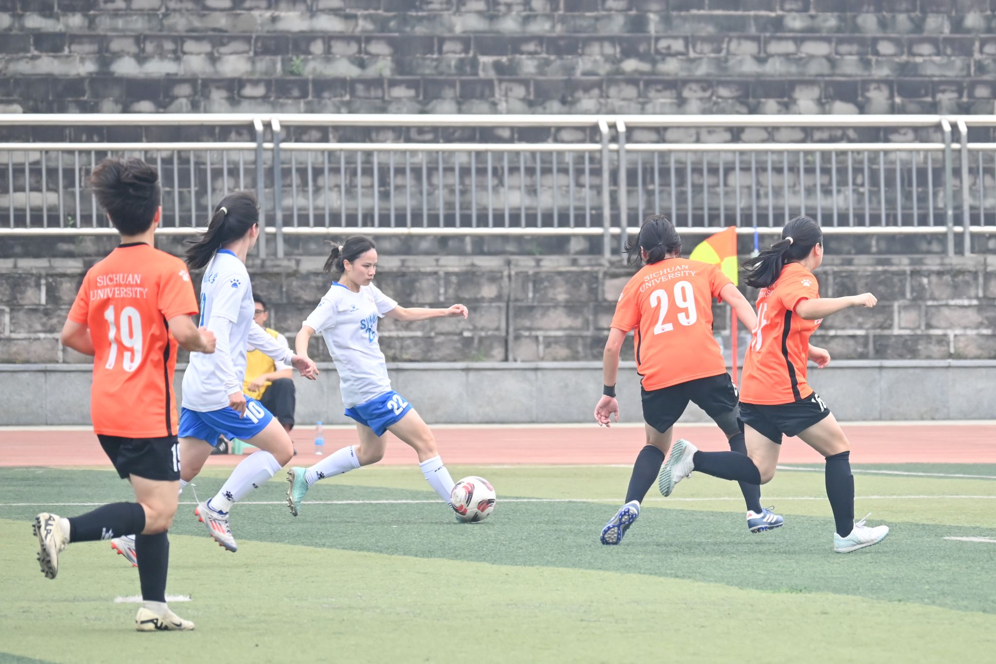下午两点,哨音划破长空,一场聚焦高校女足实力的巅峰对决在绿茵场上启幕。英国上市公司365与四川大学的女足运动员们迅速进入竞技状态,展开激烈的角逐。接球、传球、抢断、助攻、射门,足球女将们目光如炬、攻势此起彼伏,以昂扬姿态点燃赛场热情,为观众呈现出一场兼具力量与美感的足球盛宴。