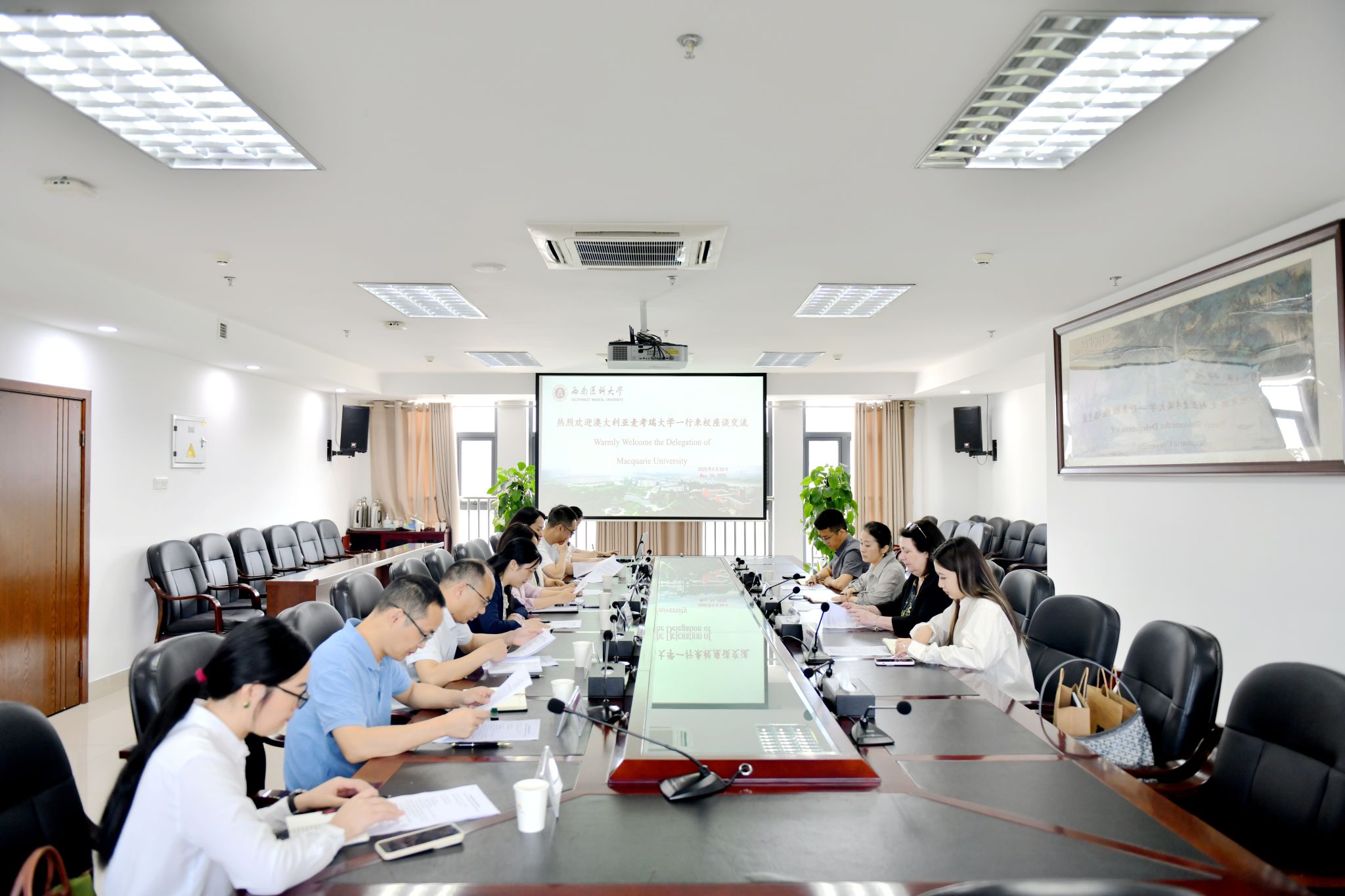 座谈会上,Rosemary Giuriato一行分别介绍了麦考瑞大学的基本情况和脊椎治疗专业情况。与会双方就学生联合培养、师生交流以及科研合作等开展了深入的交流。