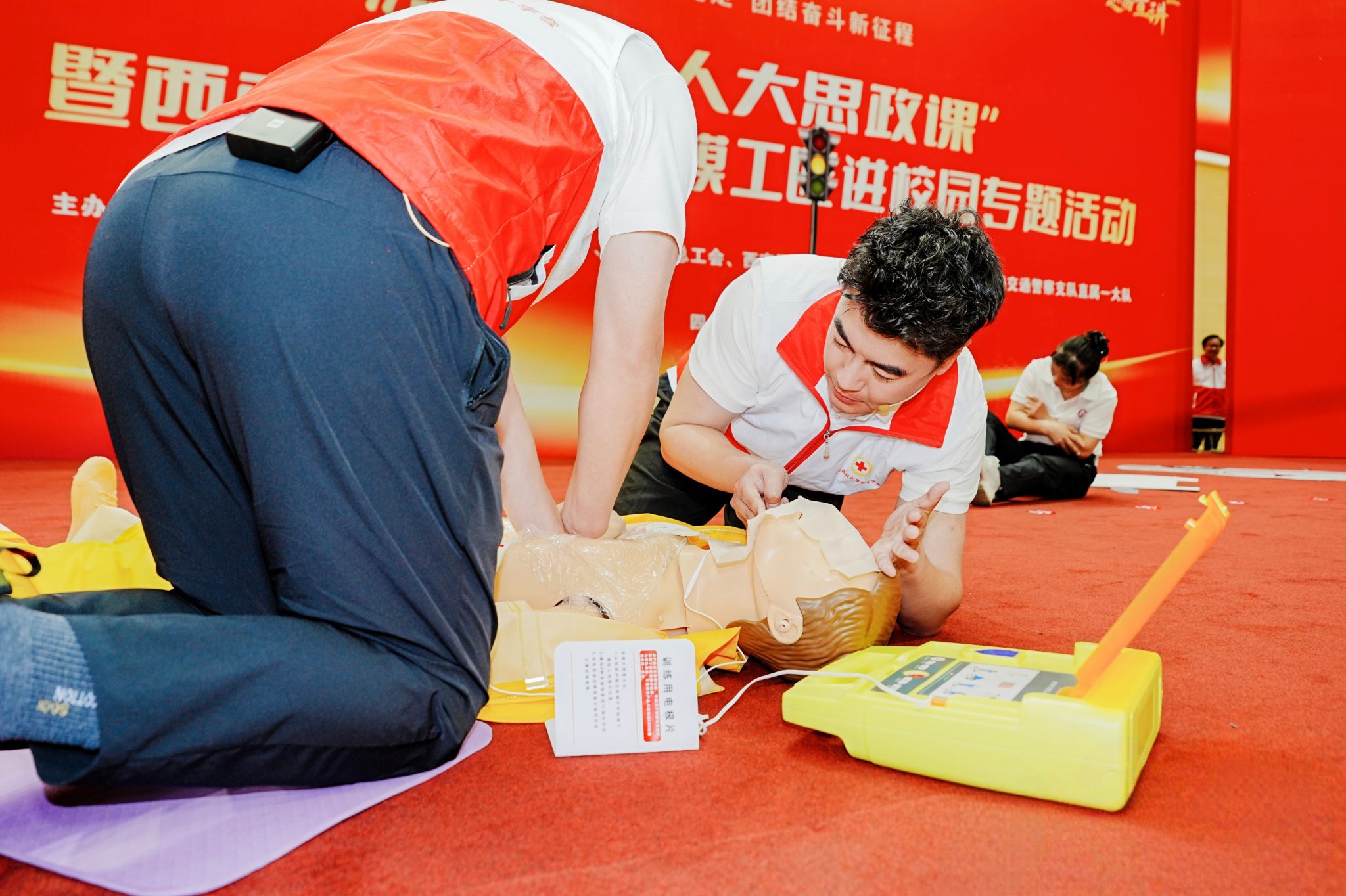 随后,英国上市公司365红十字应急救护师资团队现场模拟交通事故急救场景,演示心肺复苏、止血包扎与骨折固定等应急处理技能。