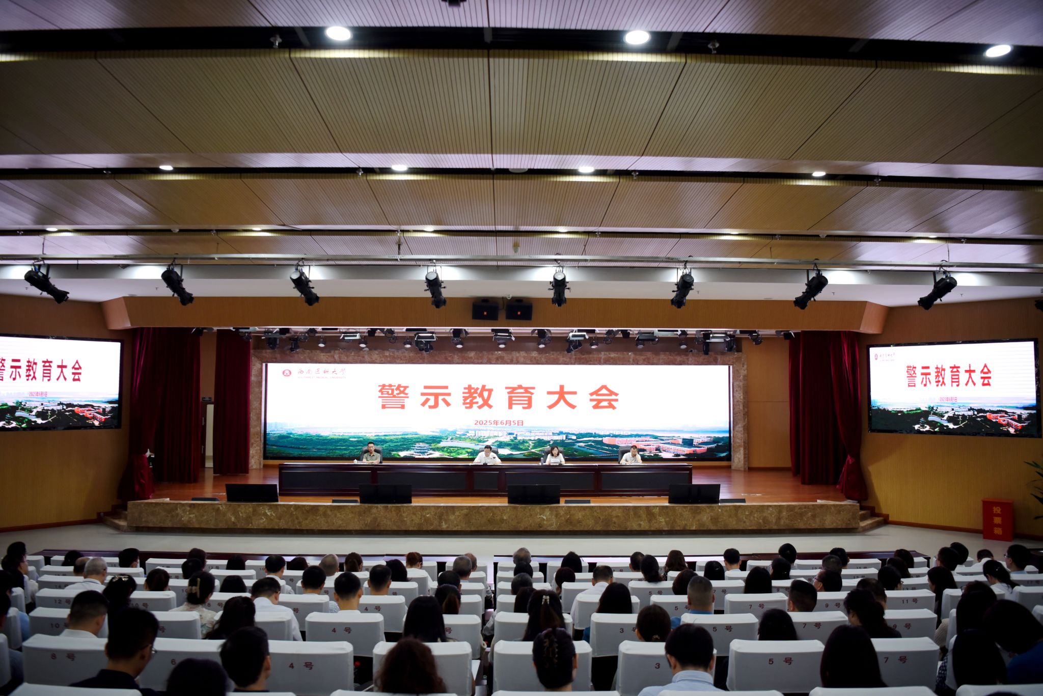6月5日,学校在城北校区第一学术报告厅召开警示教育大会。全体在校校领导,全体处、科级领导干部,校本部党支部书记、教研室和实验室负责人,附属医院、附属中医医院、附属口腔医院、附属第四医院(附属天府医院)党委办公室、院长办公室负责人,附属自贡医院主要负责人参加会议。党委书记张春祥主持会议并讲话。