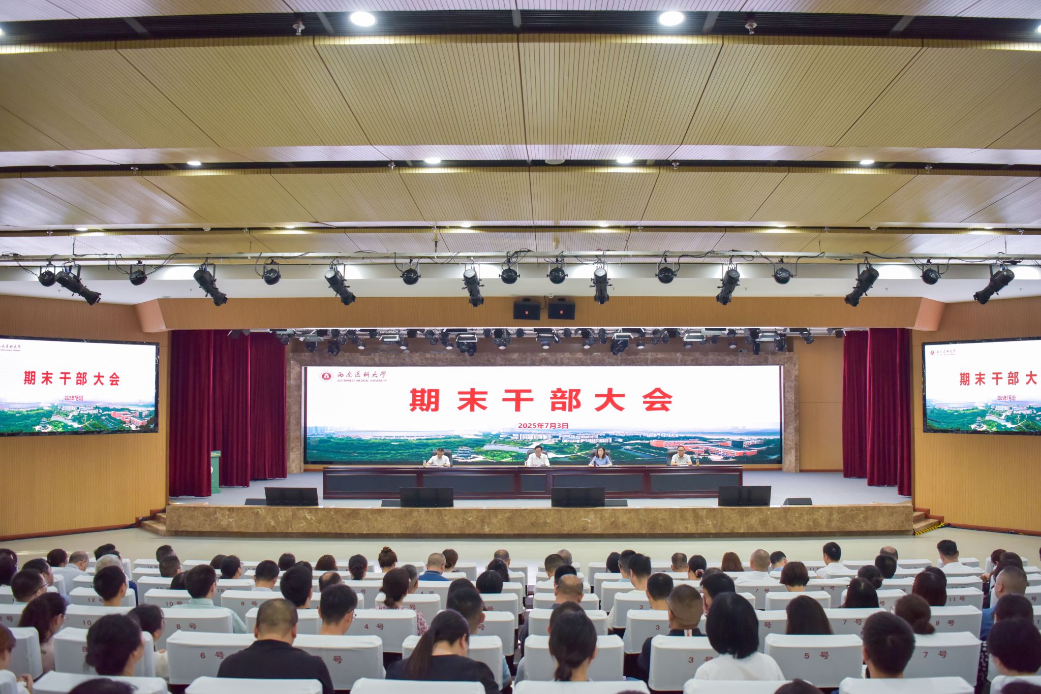7月3日上午,学校在城北校区德诚楼学术报告厅召开期末干部大会,全体在校校领导,纳入学校干部管理序列的处、科级领导干部,校本部党支部书记、教研室和实验室负责人,附属医院、附属中医医院党委办公室、院长办公室负责人,附属口腔医院、附属第四医院(附属天府医院)党政办公室负责人,附属自贡医院主要负责人参加会议。会议由党委书记张春祥主持。