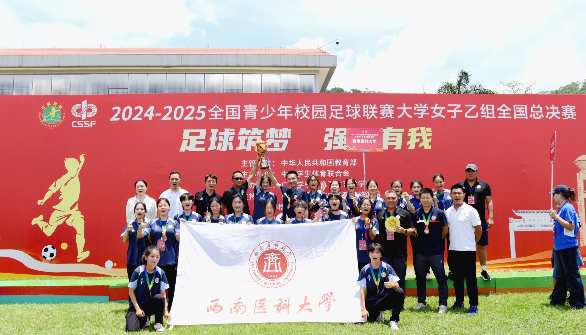 开赛以来,梧州的天气变幻莫测,烈日与阵雨交替考验着队员们的体能和意志。这座沉甸甸的奖杯,是对女足队员们长期以来艰苦训练、不懈追求的最佳褒奖,生动展现了西南医大学子昂扬向上、永不言弃的精神风貌,充分彰显了学校校园足球和体育工作的综合实力。