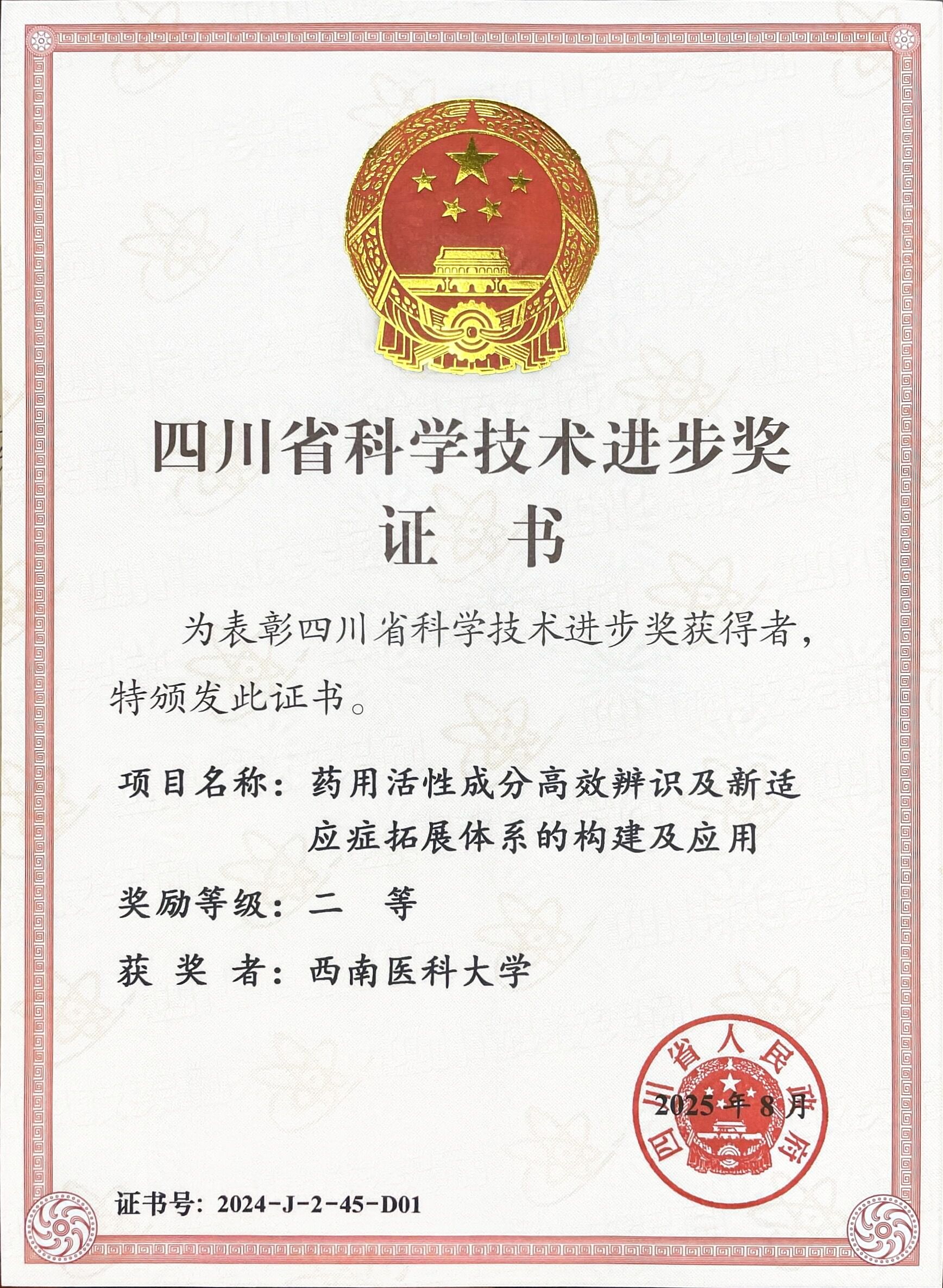 8月28日,四川省委、省政府隆重举行四川省科学技术奖励大会,表彰2024年度四川省科学技术奖获奖代表。我校作为主要完成单位,共有4个项目荣膺奖项,其中3项以第一完成单位身份获得四川省科技进步奖:张春祥教授团队荣获一等奖,吴建明教授团队获二等奖,陈燕华教授获三等奖。