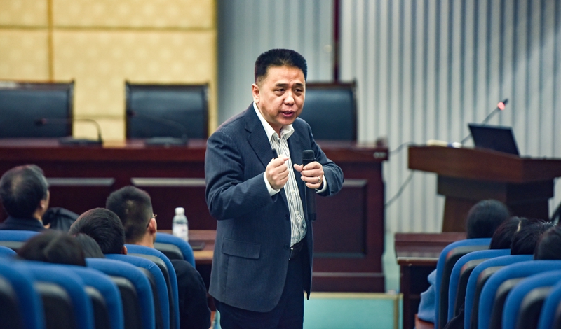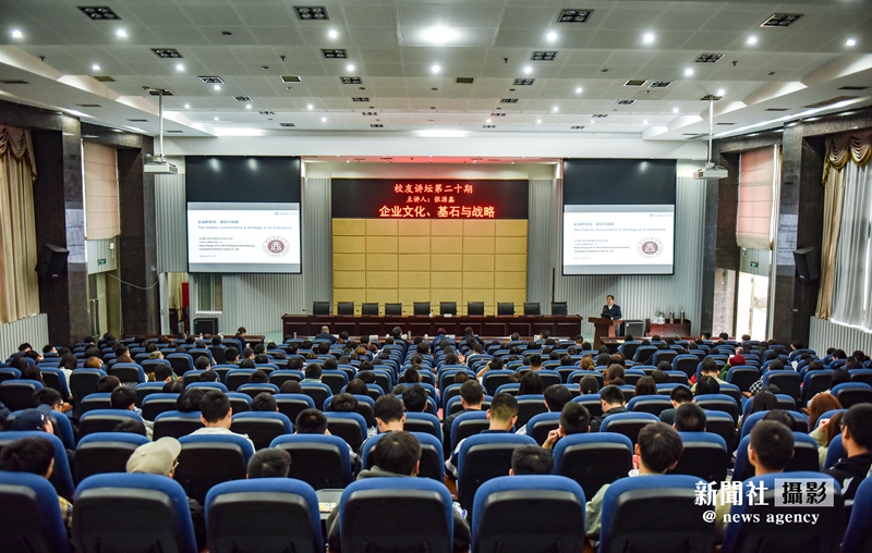 张源鑫以“企业的文化、基石与战略”为题开讲,引用多个案例,讲述知己知彼、换位思考、合理运用“纳什平衡”的重要性。随后,他结合阿里巴巴、华为等国际国内知名企业的案例,介绍了企业的商业模式及其运行,阐述了企业的“三层文化、三个核心、公司的七个基石”理念。