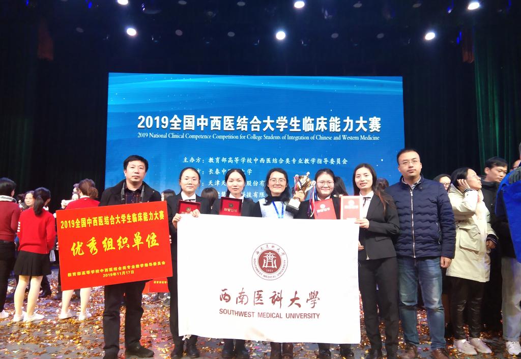 11月15-17日,由教育部高等学校中西医结合类专业教学指导委员会主办的2019全国中西医结合大学生临床能力大赛在长春举行。经过复赛和决赛的激烈角逐,我校中西医结合学院学生李秋月、罗星星、齐萍、杨燕组成的代表队荣获团体二等奖,学校获评最佳组织奖。此次大赛共有29所院校代表队参赛,我校中西医结合学院•附属中医医院副院长刘建带领8名师生代表参加了比赛。