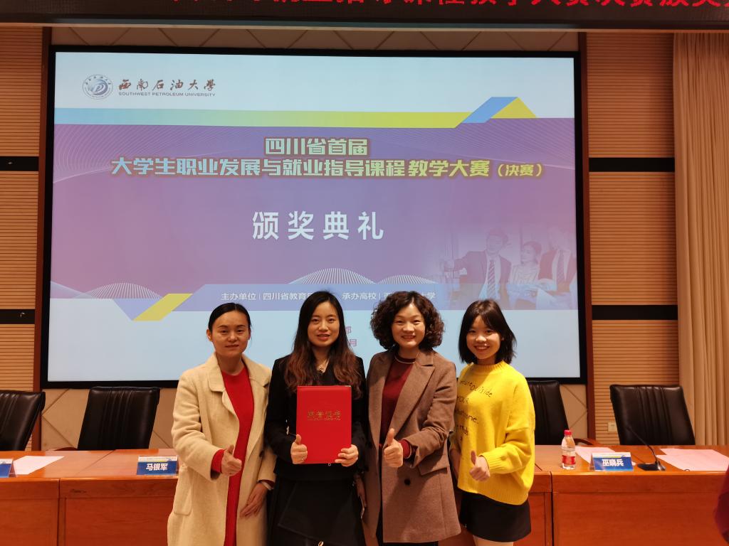11月13-15日,由四川省教育厅主办的四川省首届《职业发展与就业指导》课程教学大赛决赛在西南石油大学举行,从上半年初赛76位参赛选手中决出的50位选手参加了决赛。我校学生工作部谭群英副部长带队,大学生就业指导教研室教师潘露参加了比赛。