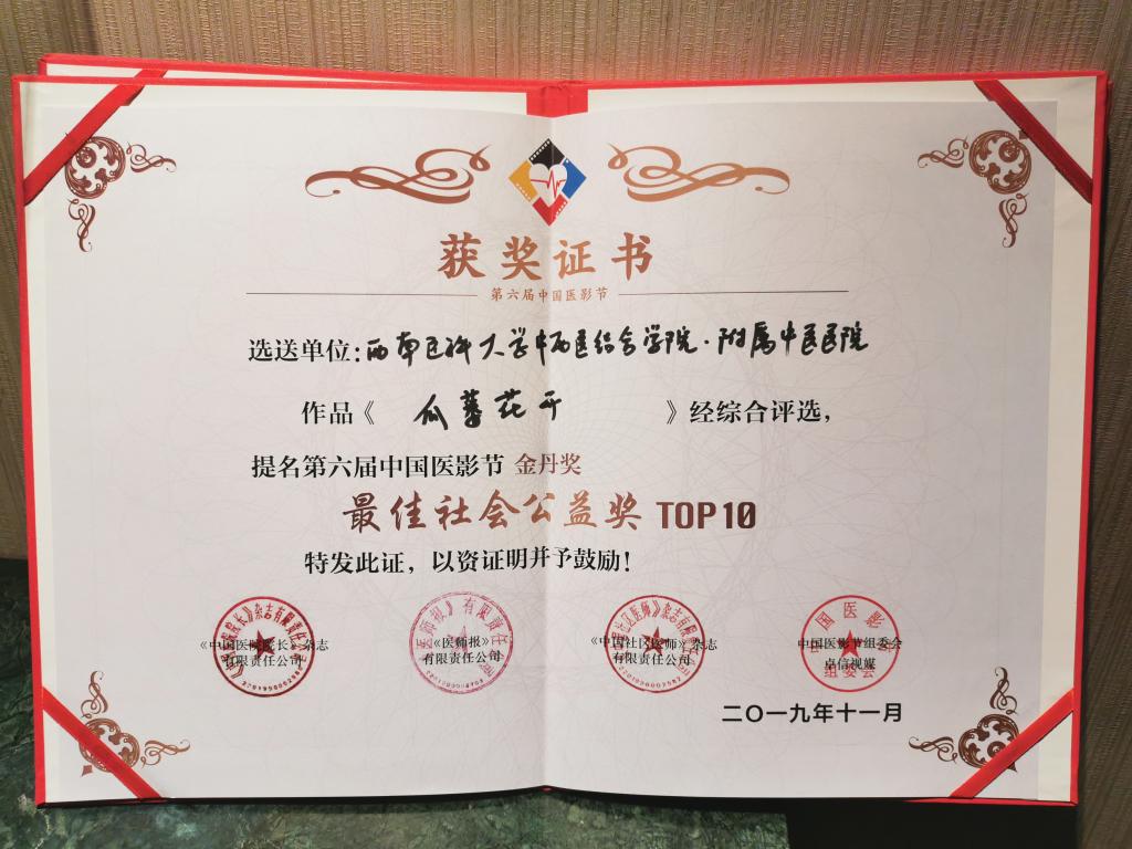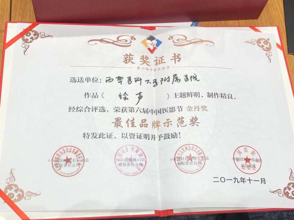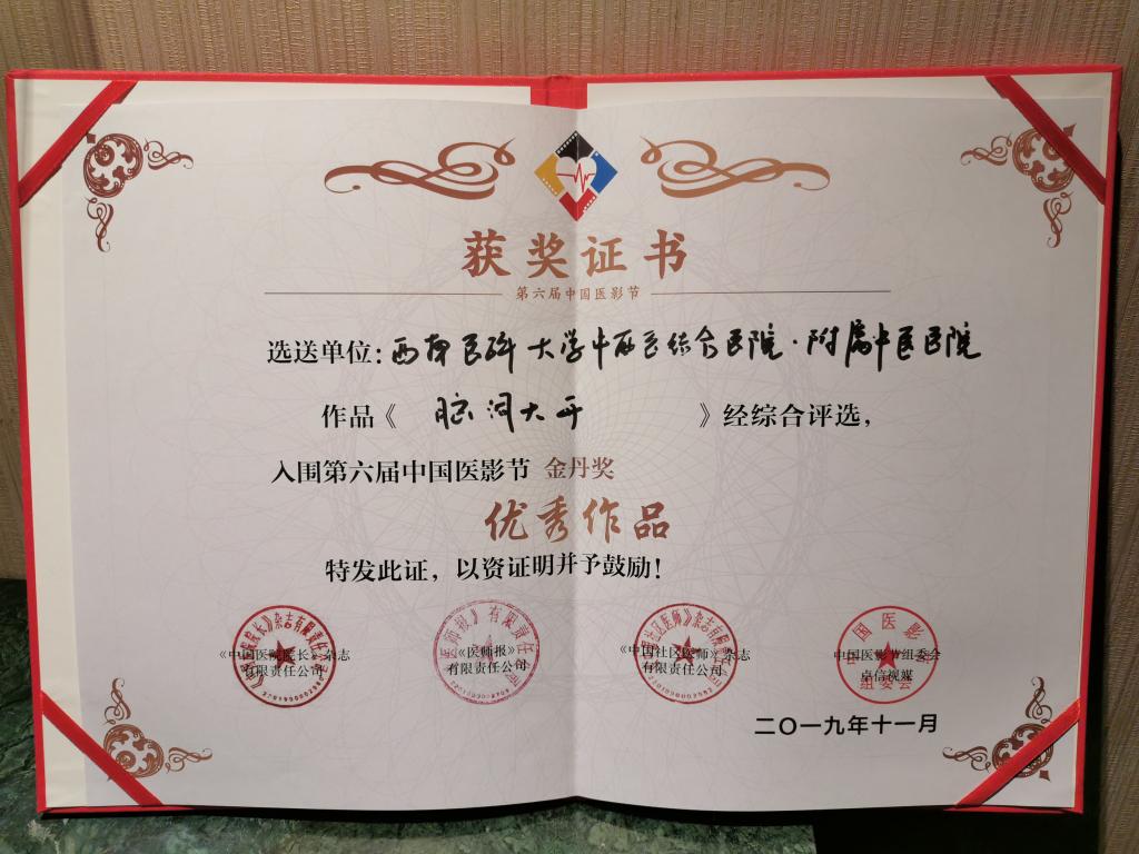 临床医学院·附属医院微电影《绘声》,荣获第六届金丹奖微电影“最佳品牌示范奖”。 中西医结合学院·附属中医医院作品孙同郊教授纪录片《医生一生》荣获“最美仁医奖”;脑梗防治微电影《脑洞大开》荣获“优秀作品”;精准扶贫微电影《瓜蒌花开》荣获“最佳社会公益奖TOP10”。