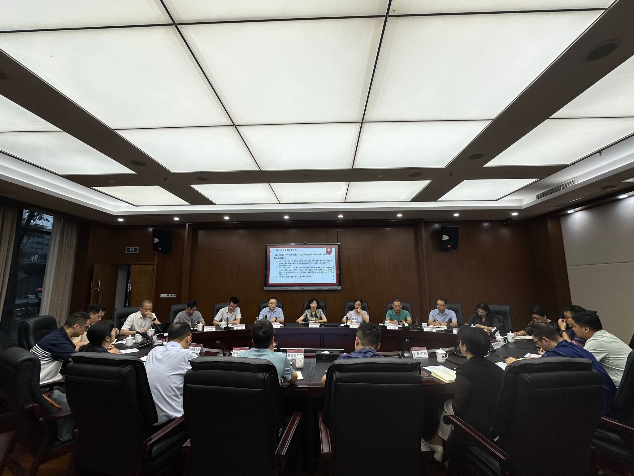会上,研究生院院长罗茂全面总结2025年上学期研究生教育工作,安排部署秋季学期工作任务,强调了近期重点工作。研究生院党总支书记朱小平对学生安全管理、思政教育工作作补充、强调。