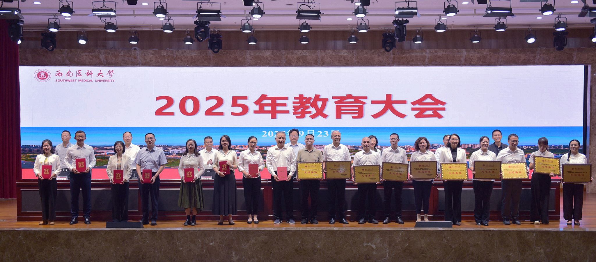 大会设置颁奖环节,表扬为学校教育事业作出突出贡献的先进集体和个人。主要对学校全国高校黄大年式教师团队(药理学创新教师团队)、国家级一流本科课程、中国国际大学生创新大赛、“挑战杯”中国大学生创业计划竞赛等获奖项目,省级先进集体与个人,以及校内奖项等进行了表扬。