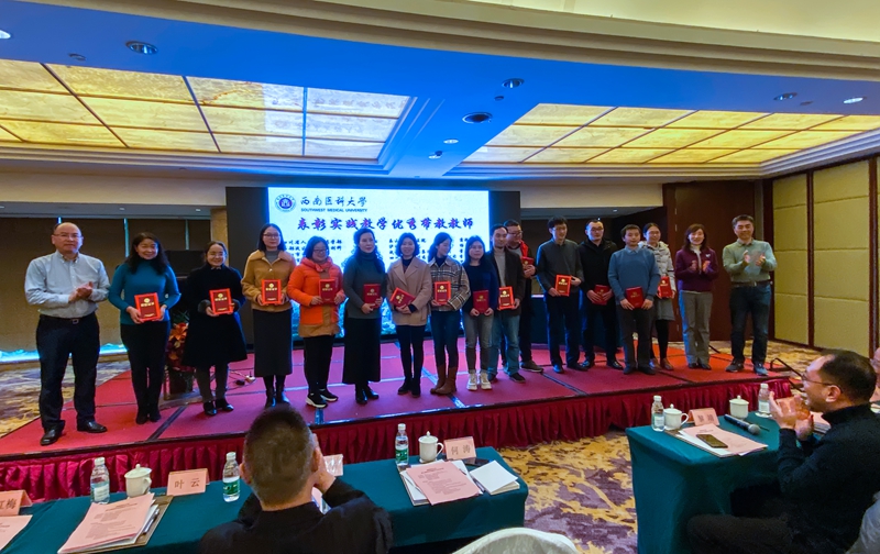 药学院院长叶云、成都地奥制药集团副总裁姚华先后致辞。2015级临床药学专业实习生代表席田兰发言。教务处副处长黎靖宣读了《关于表彰2017-2019年度药学类专业优秀带教教师的决定》,何涛、叶云和成都地奥制药集团副总裁赵海为14名优秀带教教师进行颁奖。