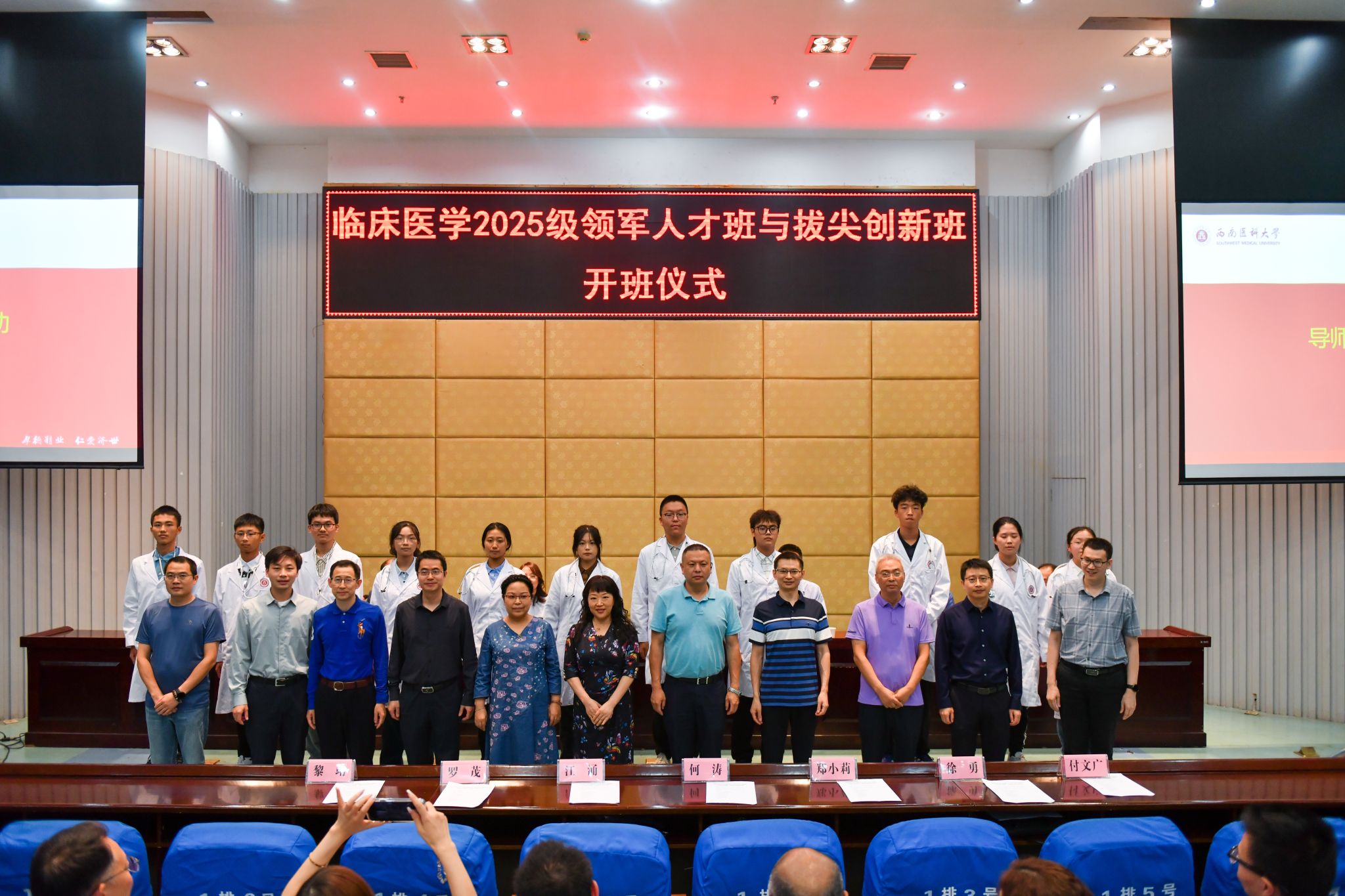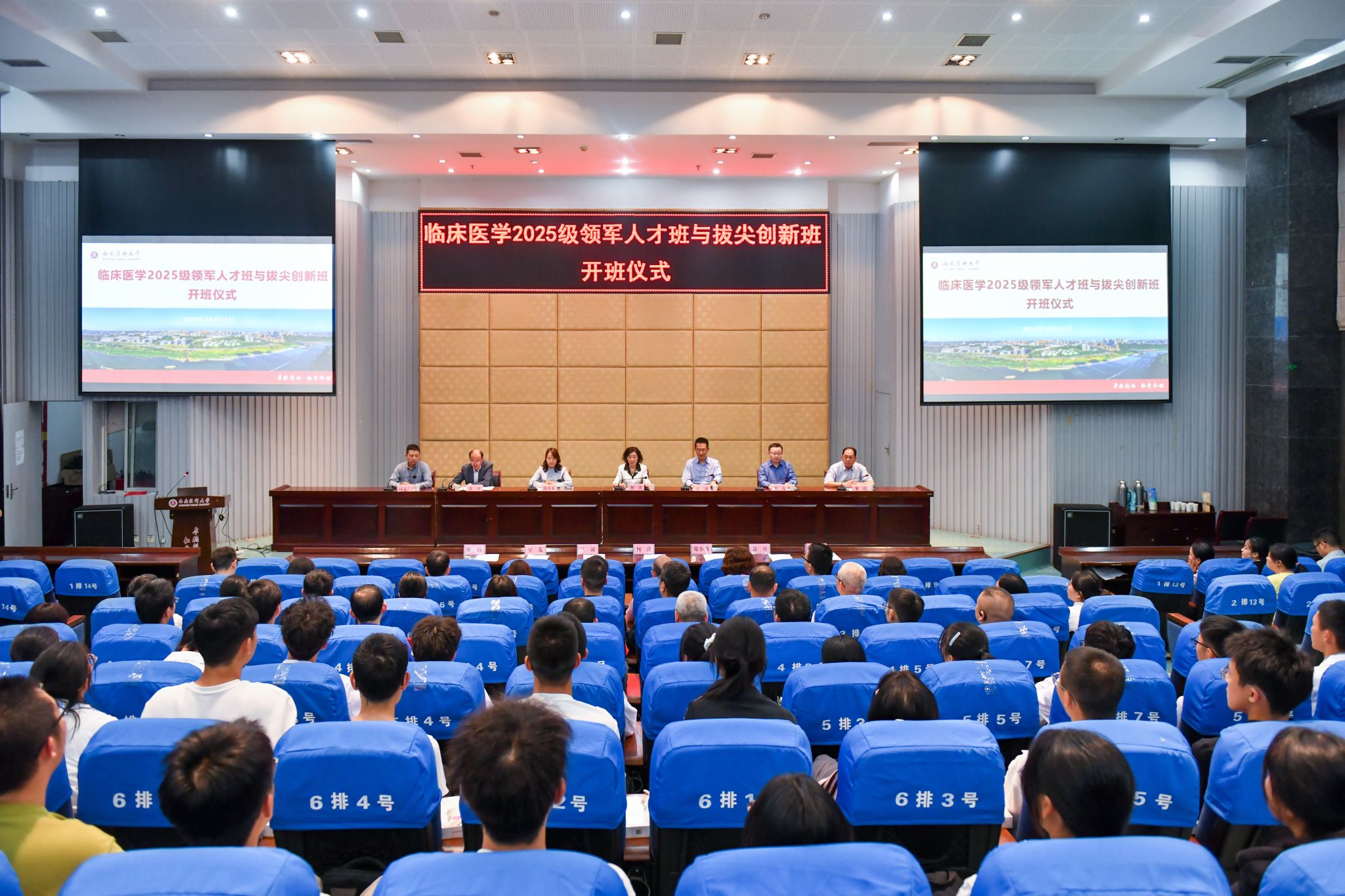 10月15日,学校在城北校区第二学术报告厅举行临床医学2025级领军人才班与拔尖创新班开班仪式和第一次励志讲座会。学校校长何涛、副校长江涌,党政办公室、宣传部、学生工作部、教务处、科技处、研究生院等职能部门负责人,相关院系领导、导师代表以及2025级临床医学领军班、拔尖班全体学生参加。仪式由临床医学院·附属医院党委书记徐勇主持。
