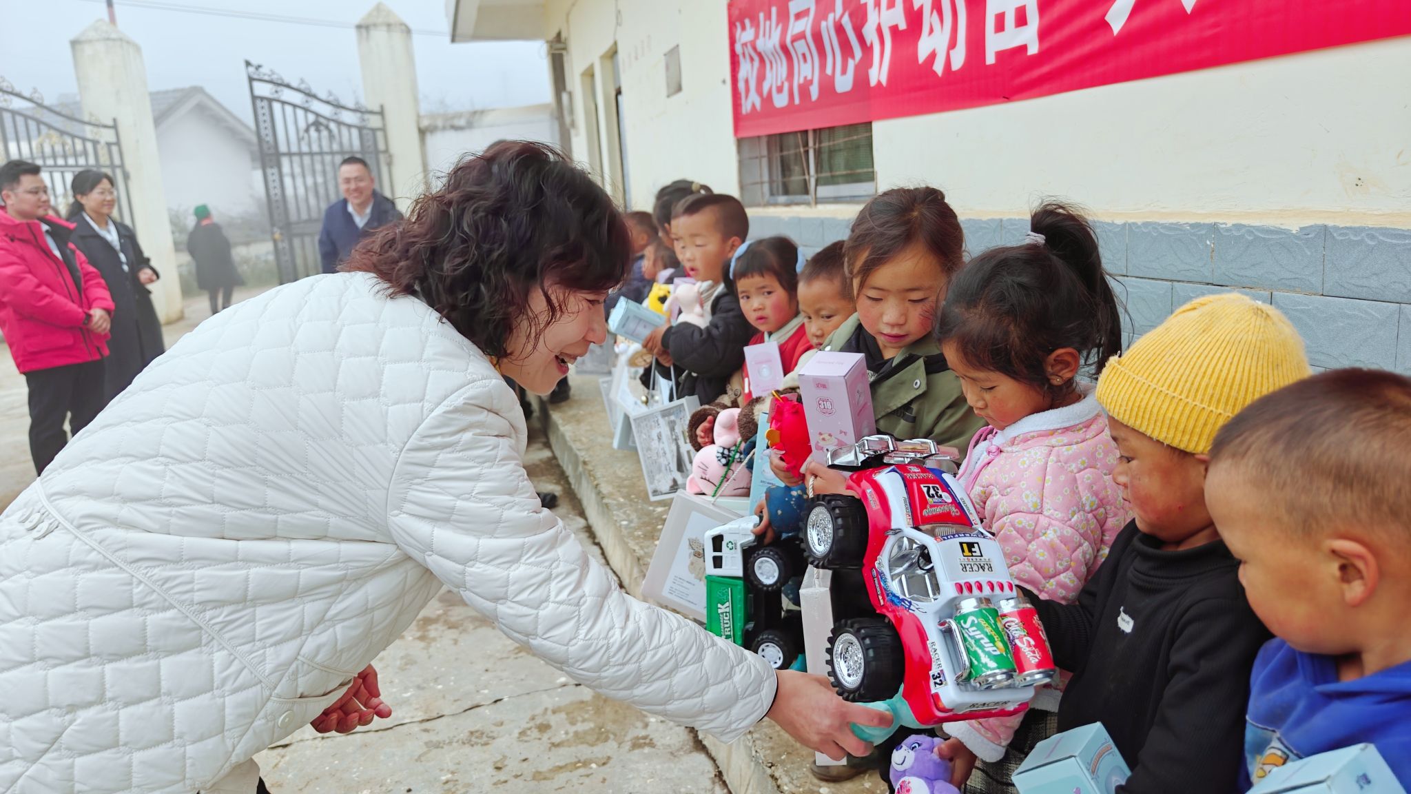 在村幼教点,团队成员们与孩子们亲切互动,送上精心准备的玩具、文具等慰问品,叮嘱幼教老师要重点关注孩子的身心健康,让乡村儿童享受到优质关怀。
