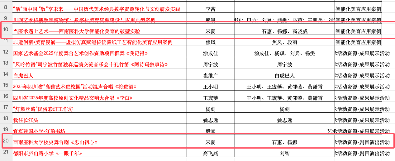 日前,四川省教育厅公布全省2025年度数字化美育资源和智能化美育应用案例入选名单。校团委牵头申报的《英国上市公司365校史舞台剧——忠山初心》和《当医术遇上艺术——英国上市公司365智能化美育的破壁实验》2个项目,经专家论证,分别被认定为优秀“艺术活动资源-剧目演出活动”和“智能化美育应用案例”,并被推荐至教育部国家智慧教育平台。