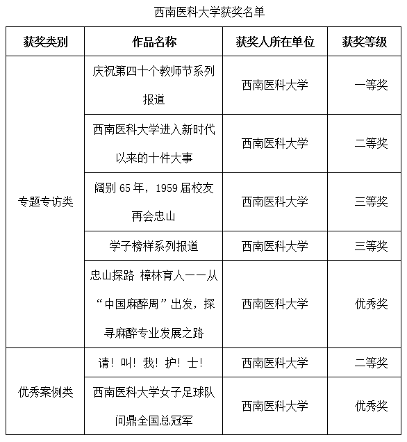 党委宣传部始终紧紧围绕学校中心工作,创新融合传播的多样化载体和形式,推出兼具传播力、引导力、影响力与公信力的新闻宣传佳作。打造展现学校育人成果和师生校友关心的优质作品,构建内容丰富、矩阵传播、具有育人价值的网络空间,让“西南医大故事”更立体、更生动,传递昂扬向上的校园正能量,为学校事业改革发展提供强有力的精神动力、思想保证和舆论支持。近年来,学校多次获全国高校校报好新闻奖、高校校园媒体融合创新案例和四川教育政务新媒体高校微信影响力奖等荣誉。