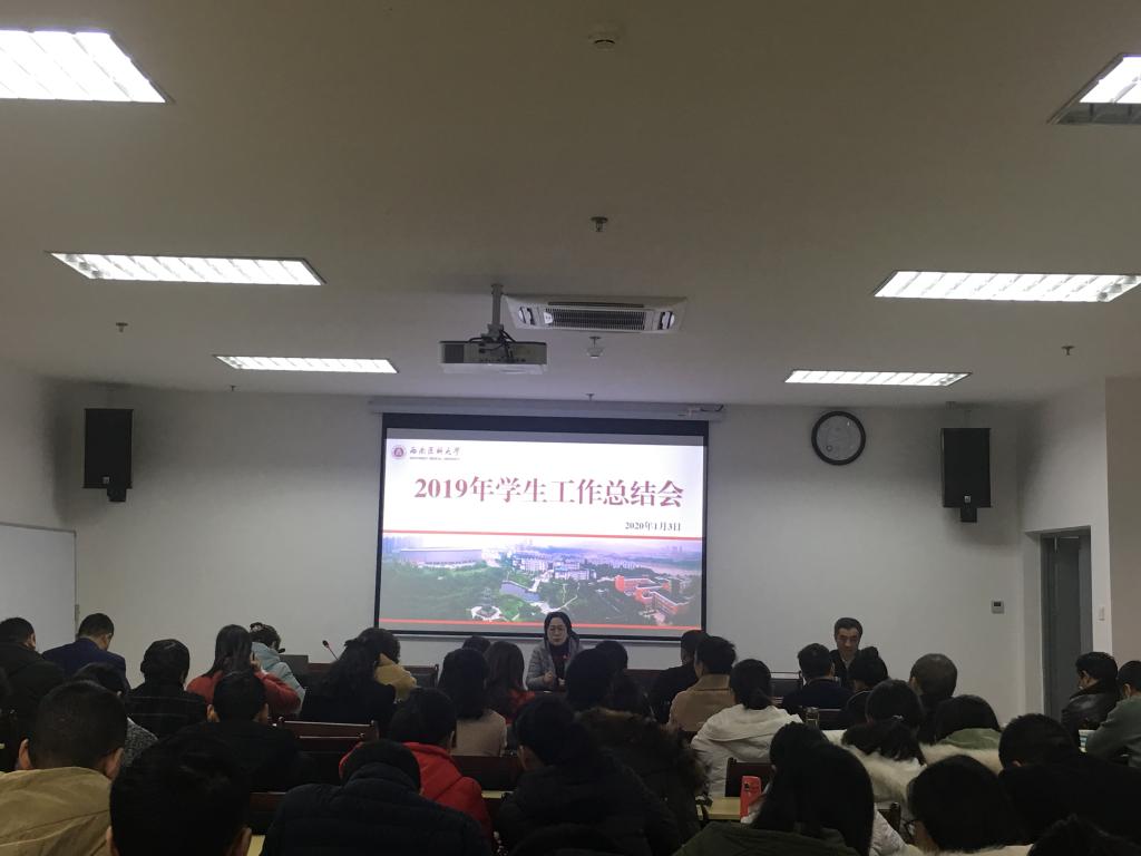 刘毅总结讲话。她指出,2019年思想政治教育有新成效、学业发展指导有新机制、心理健康教育有新举措、安全教育管理有新作为、资助日常管理有新规范、招生就业工作有新业绩、制度规范建设有新进展、学工队伍建设有新思路;2020年要在抓宏观统筹、顶层设计上持续探索,在抓重点、补短板上持续用力,在转作风、重调研上持续强化,在重人文、重关怀上持续改进。