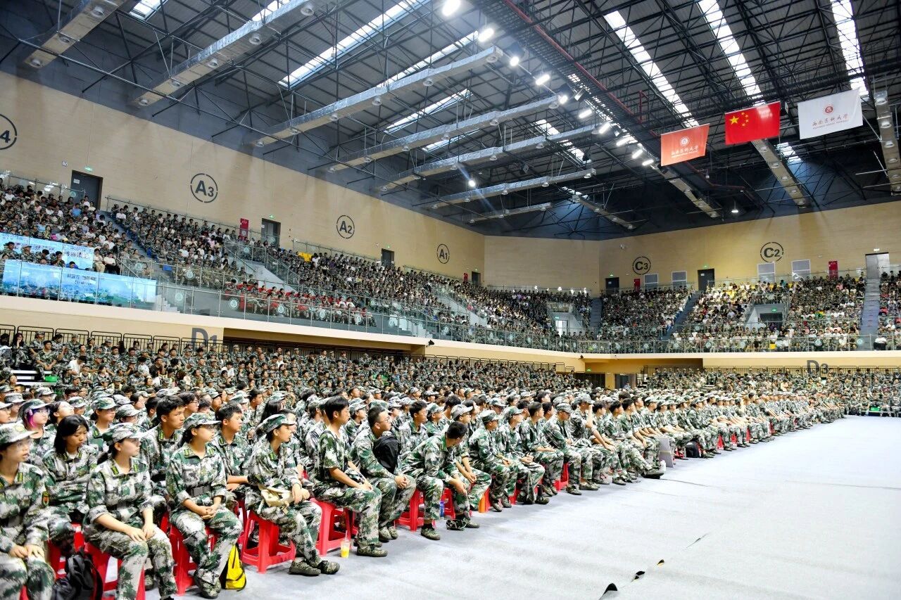 9月9日晚,学校党委书记张春祥以《与时代同频共振 与梦想同向同行 在青春答卷上书写无悔篇章》为题,在城北校区青年体育馆为2025级新生讲授“开学第一课”。