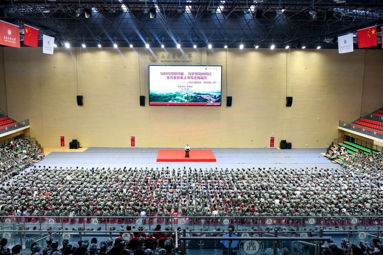 张春祥指出,西南医大在七十余年的征程中,形成了团结奋斗、艰苦创业的优秀传统,高尚医德、精湛技术、健康体魄、服务人民的价值追求,历代西南医大人秉持开拓进取的信念,凭借艰苦创业的毅力,一步一个脚印,让学校实现了从无到有、由弱至强的跨越,希望同学们要肩负起西南医大人的时代使命。张春祥同时寄语2025级新生三句话:铸信念之魂,照亮青春前路;立学习之志,积蓄奋进力量;担复兴之责,书写时代华章。