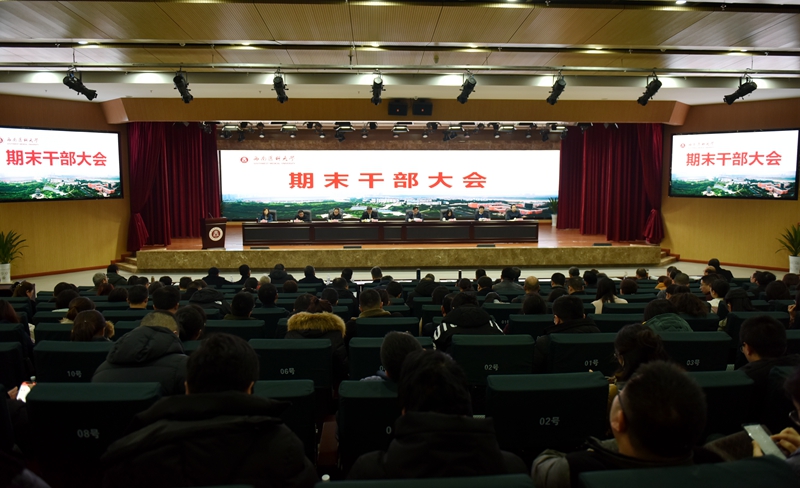 19日下午,学校期末干部大会在城北校区第一学术报告厅召开。党委书记廖斌同志主持会议。