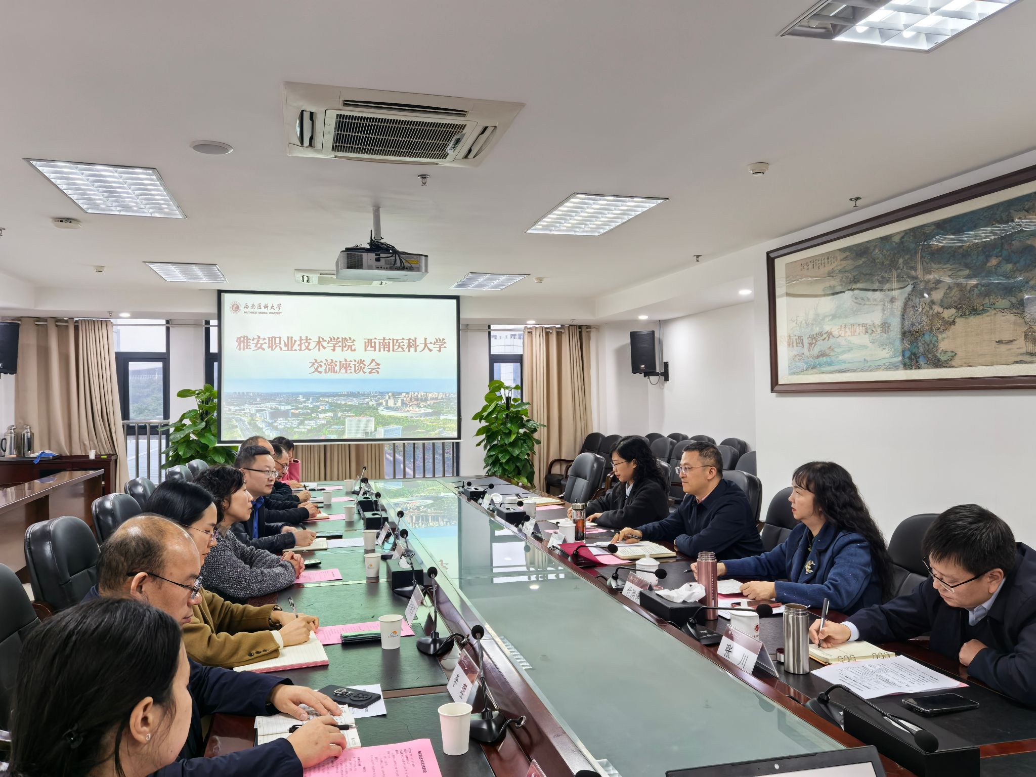 11月10日,雅安职业技术学院党委副书记、校长黄诚,党委常委、副校长付洪涛,党委委员、组织部部长、人事处处长刘永恩,临床医学院(附属医院)院长张川,基建后勤处副处长李垒一行5人来校交流。座谈交流会在城北校区德诚楼521会议室举行,学校党委副书记、校长何涛,组织部、人事处、研究生院、基建后勤处、临床医学院相关领导参加了会议,会议由学校研究生工作部·研究生院部(院)长罗茂主持。