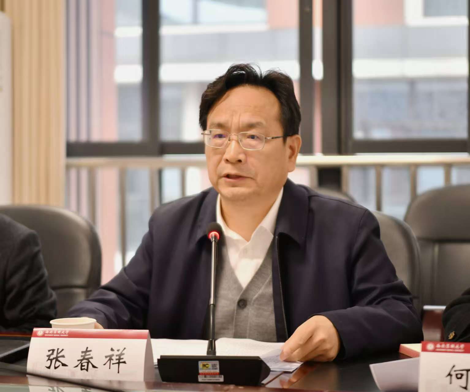张春祥作了总结讲话。他充分肯定了近年来马克思主义学院取得的成绩和发展实效,并对学院发展存在的问题和需求进行了回应,要求各相关职能部门对于会议提出的困难和问题要认真梳理研究,拿出切实可行的解决方案,在政策、资源、条件保障等方面给予倾斜,形成协同支持马克思主义学院发展的强大合力。针对马克思主义学院未来发展,张春祥指出,要做好统筹谋划,制定好学院“十五五”期间发展规划,并提出要求:坚持“马院姓马、在马言马”的鲜明导向,牢牢把握正确政治方向;聚焦主责主业,着力提升思想政治理论课教学质量;夯实学科基础,大力加强马克思主义理论研究和阐释;强化队伍建设,打造高素质专业化思政教师队伍;服务发展大局,提升咨政育人和社会服务能力。