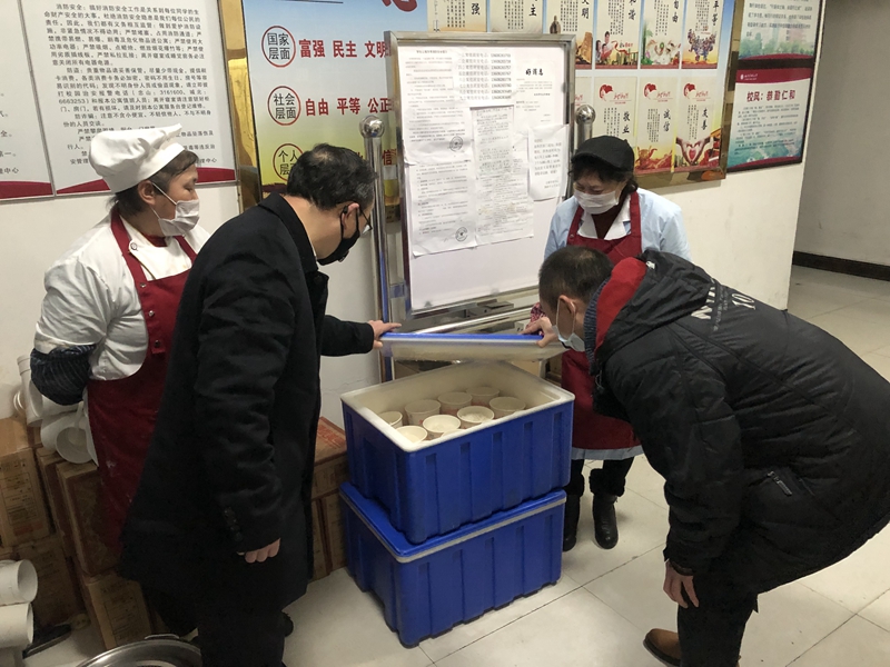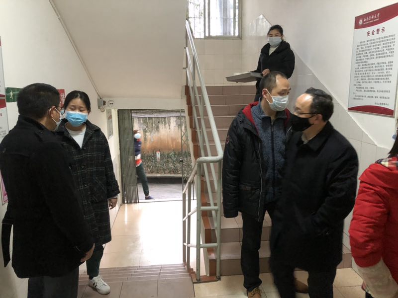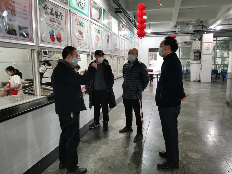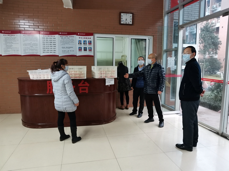 聂敏海一行对两校区食堂、学生公寓进行了走访,对奋战在一线对食堂和公寓员工进行了亲切慰问,同时,要求大家严格按照疫情防控工作安排做好环境消毒消杀和个人防护工作,做好值班值守,加强正面引导,做好各项物资的储备工作。